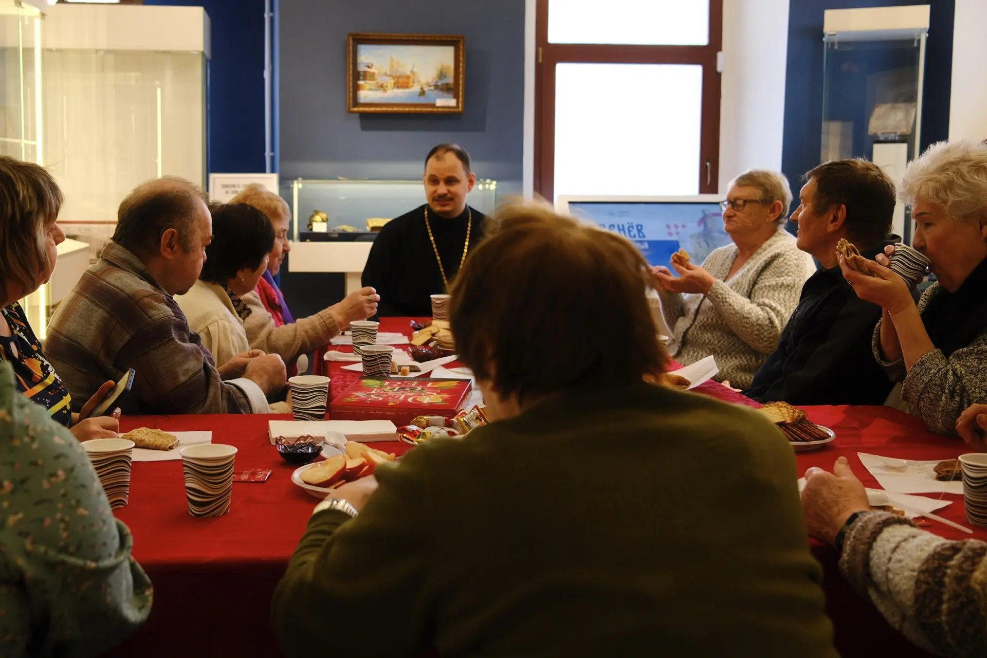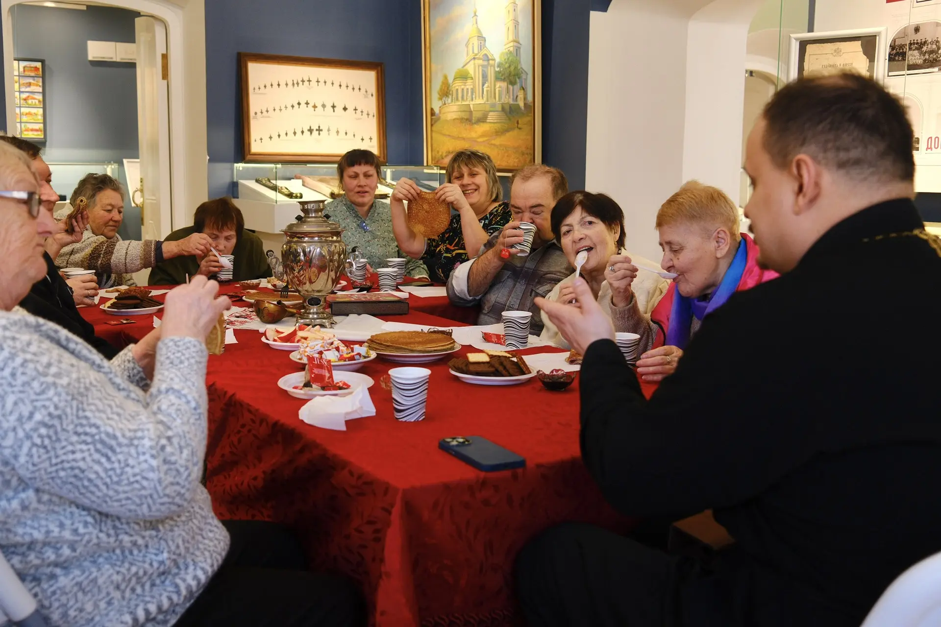 В этом году масленичные встречи состоялись в Веневском краеведческом музее, где настоятель Воскресенского собора иерей Дионисий Ворсобин встретился с подопечными центра социального обслуживания. Участники встречи с огромным интересом слушали историю праздника и получили ценные знания о праздновании Масленицы. Встреча специально была организована в местном музее, где присутствующие смогли погрузиться в историю и традиции русского народа, узнать о значении праздника, послушать увлекательные рассказы и увидеть экспонаты. Экскурсия вызвала живой отклик: участники задавали вопросы, делились своими впечатлениями и воспоминаниями о семейных праздниках.