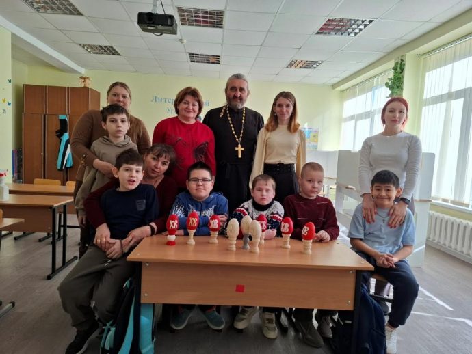 В преддверии праздника Пасхи настоятель храма святителя Луки Крымского поселка Восточный иерей Виталий Хлустиков посетил ресурсный класс в МКОУ «Средняя школа №10» города Ефремова.