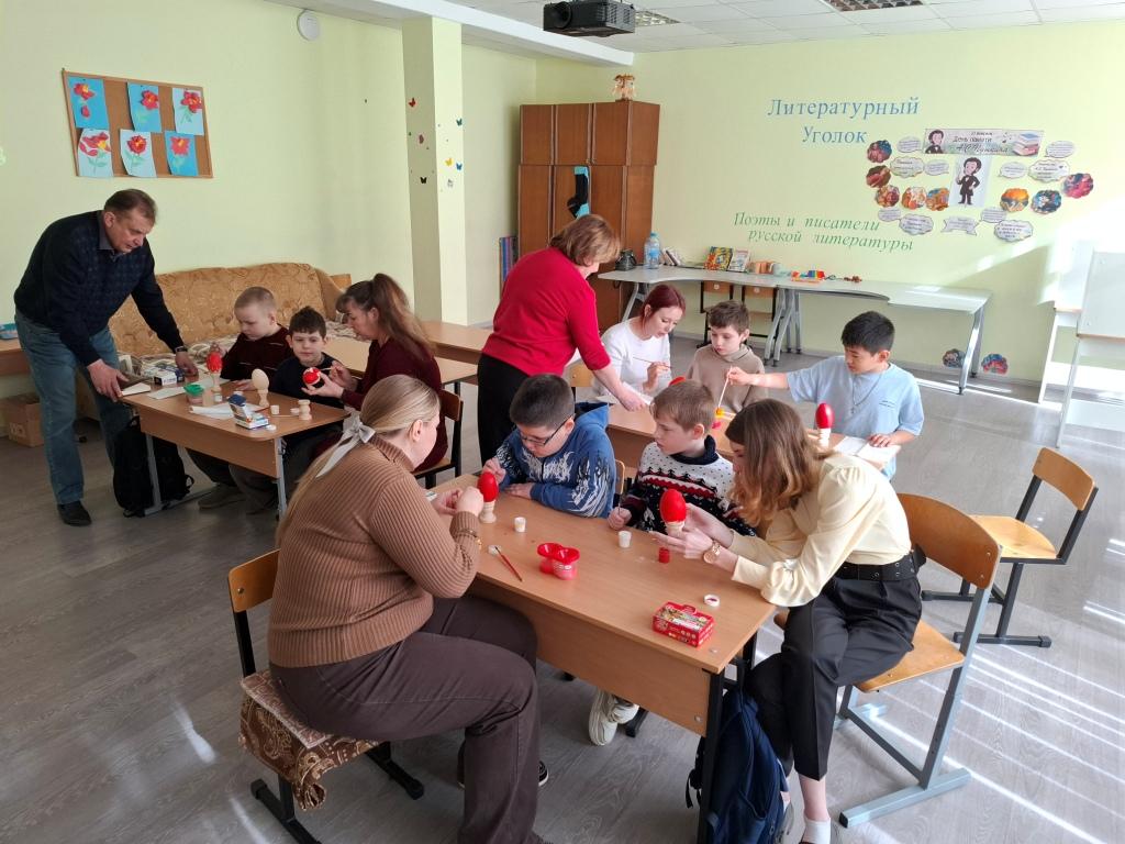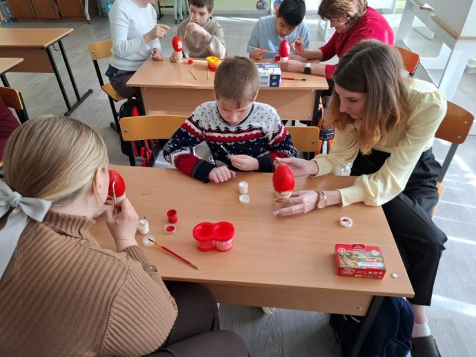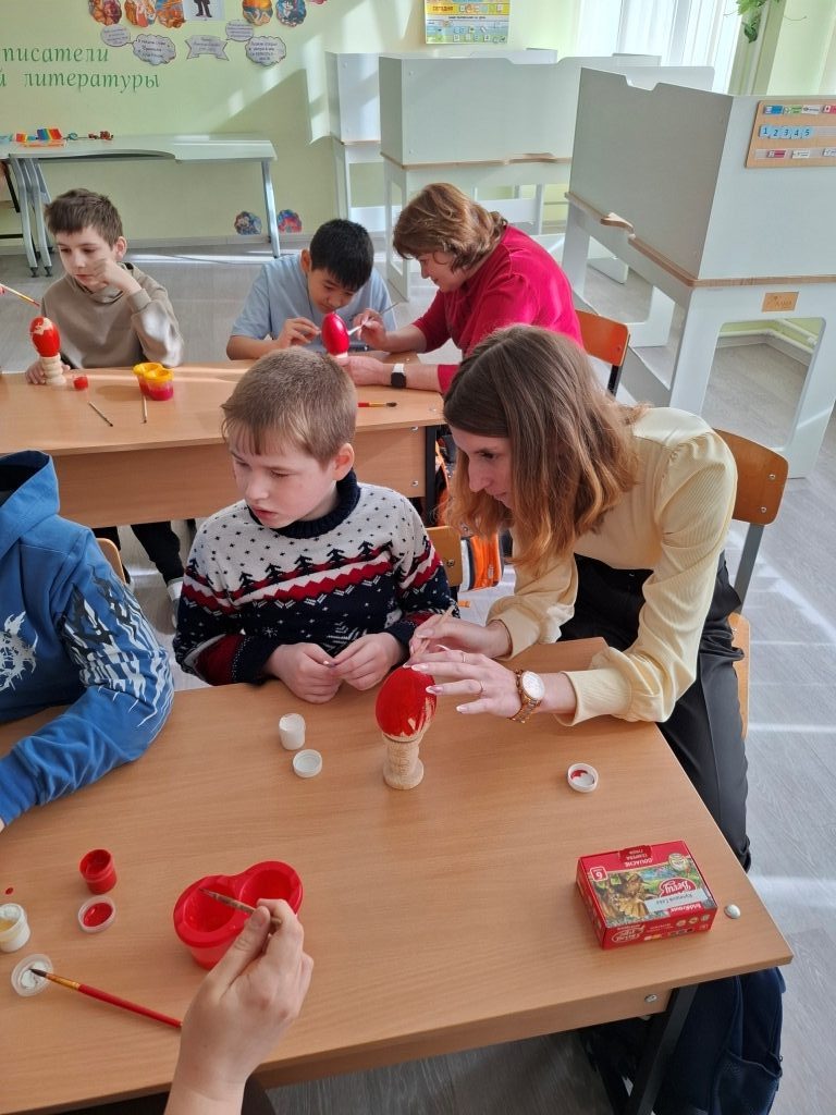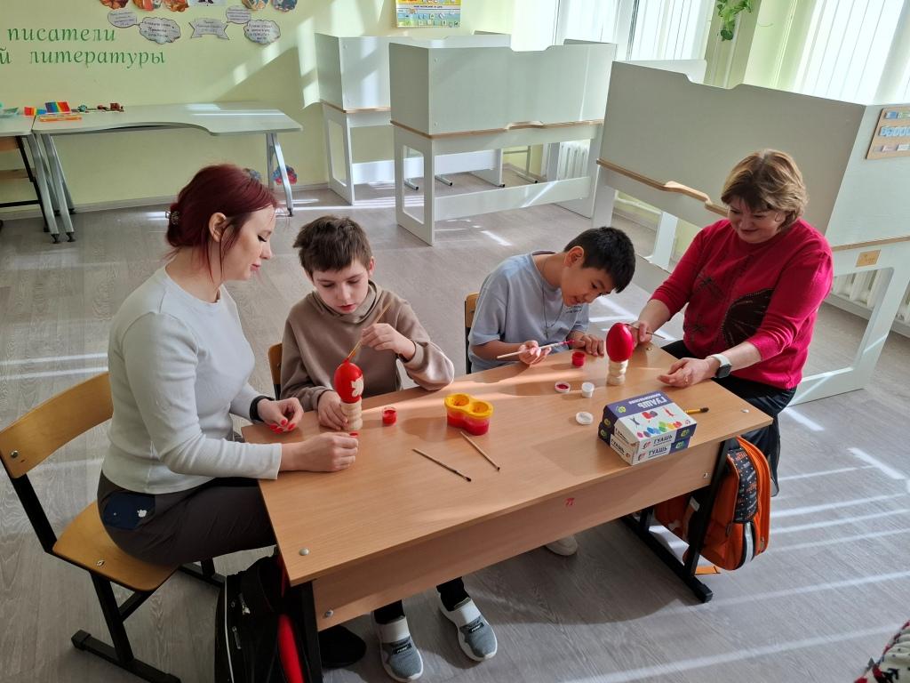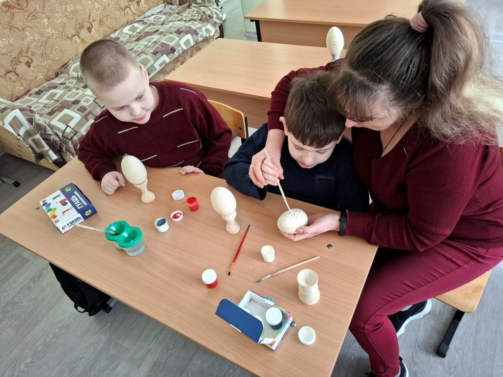 Помогали воспитанникам украшать пасхальные символы педагоги и наставники класса.