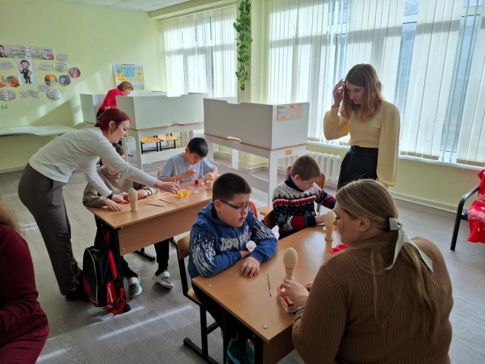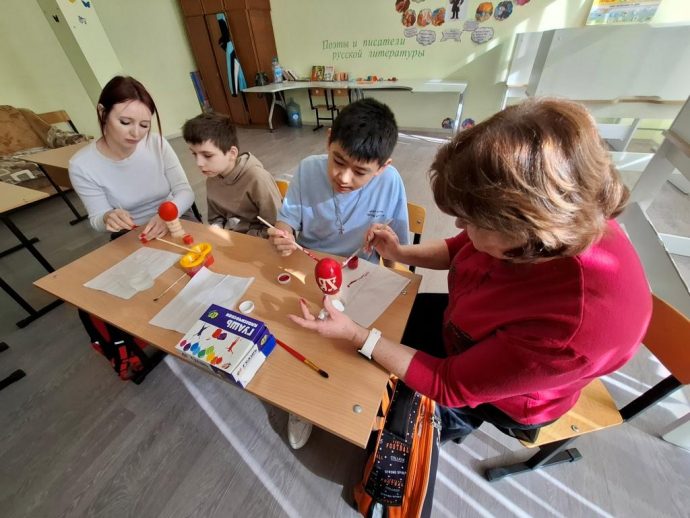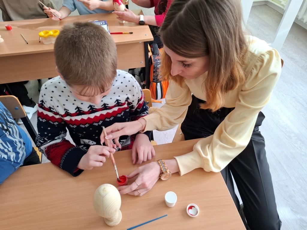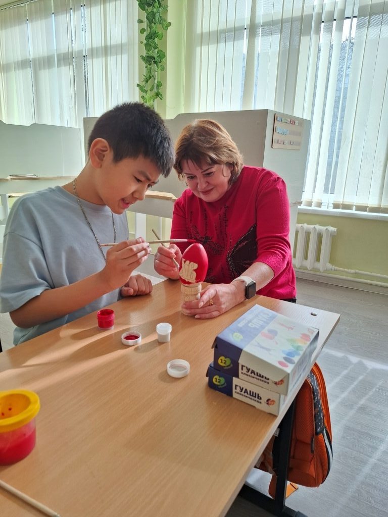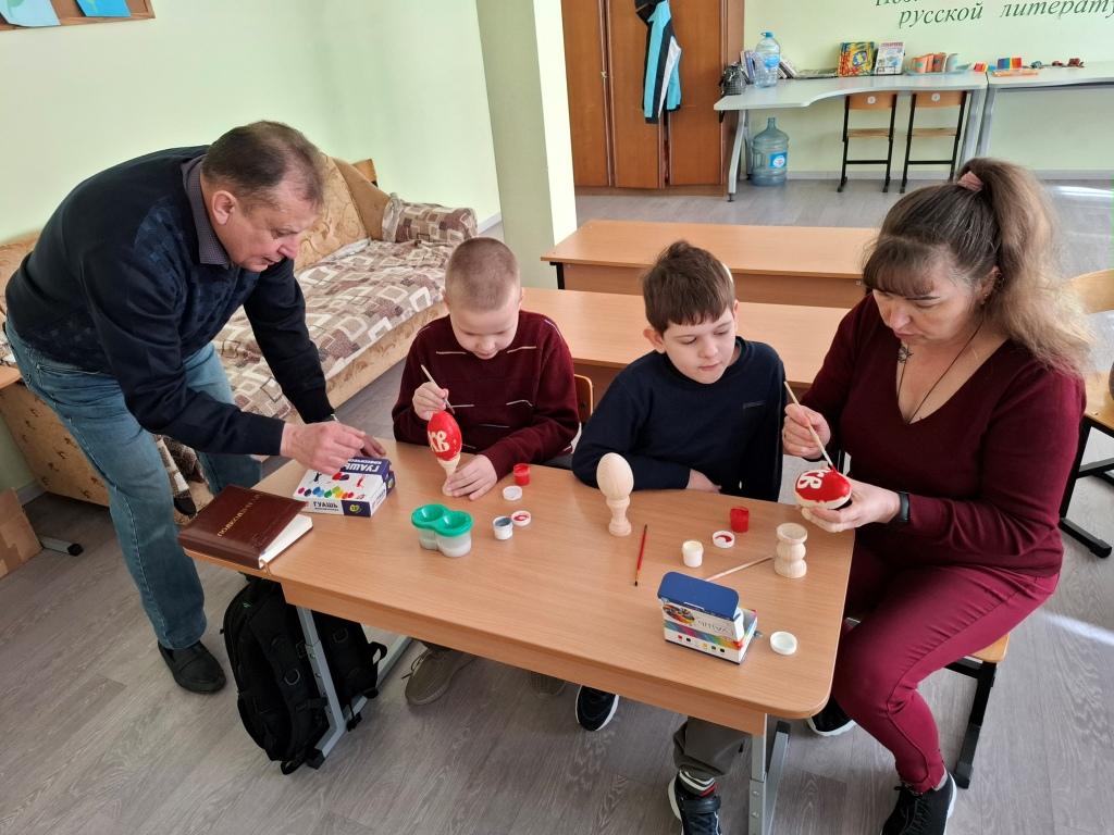 Помогали воспитанникам украшать пасхальные символы педагоги и наставники класса.
