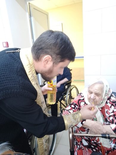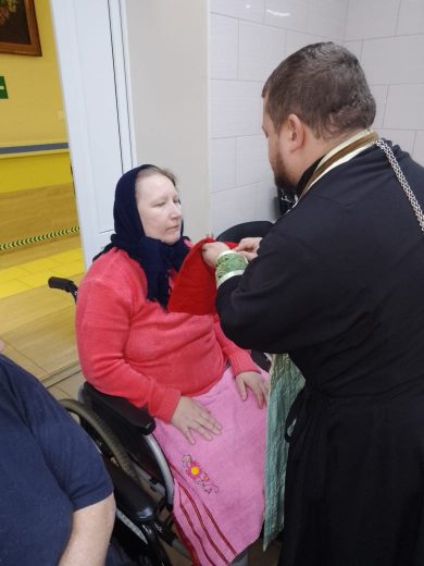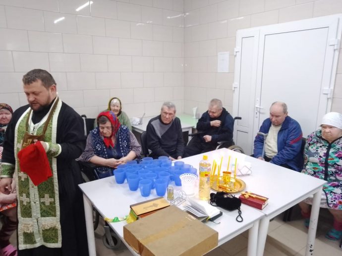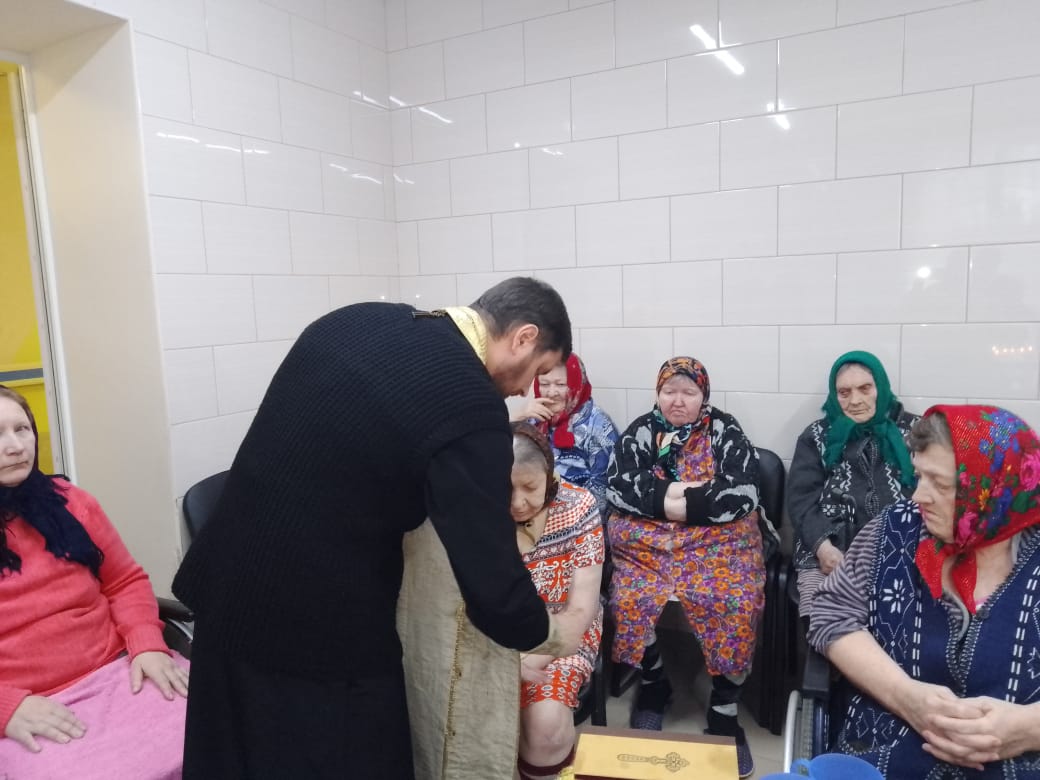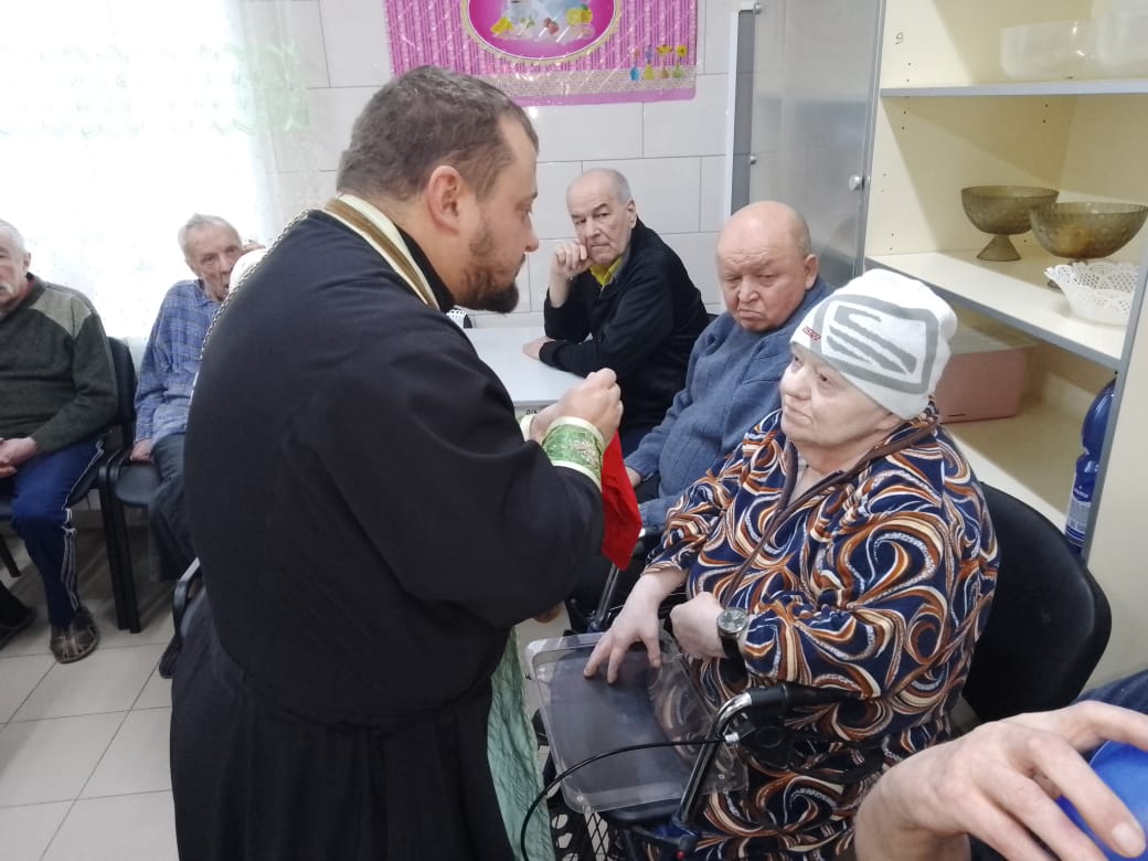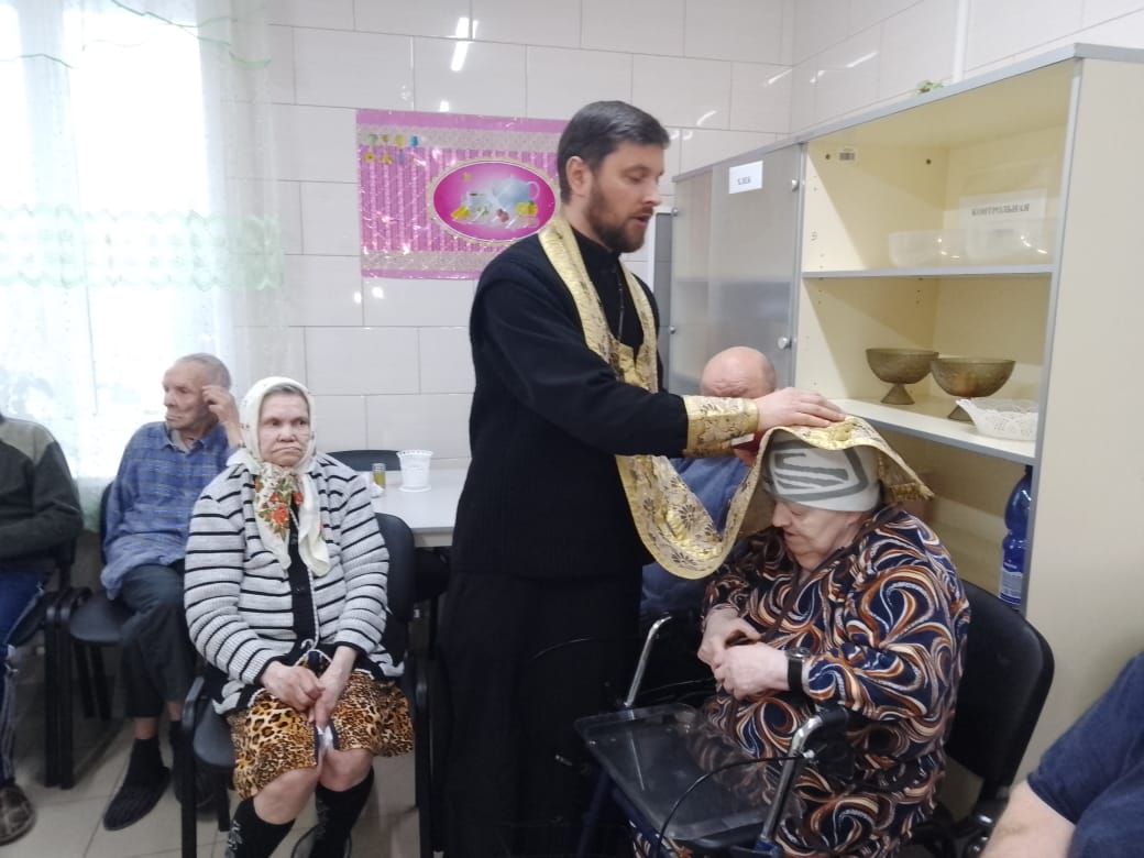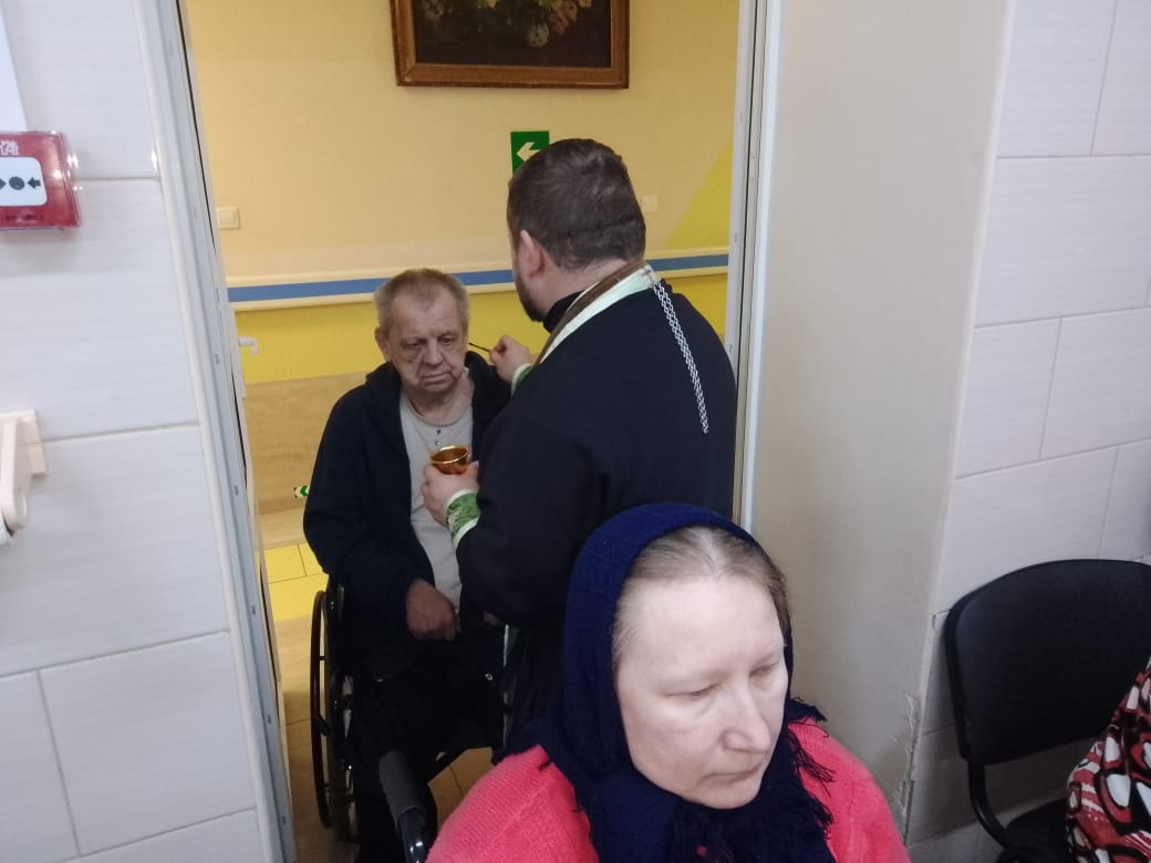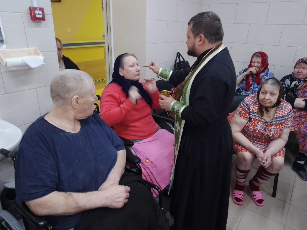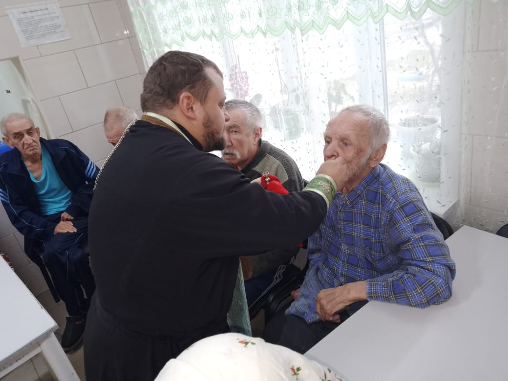 По согласованию с администрацией государственного учреждения клирики Свято-Казанского храма иерей Ярослав Сопига и иерей Евгений Мелихов совершили Таинства Исповеди, Причастия и Соборования в доме-интернате, где проживают больные одинокие люди, нуждающиеся в душевном тепле, заботе и сострадании.