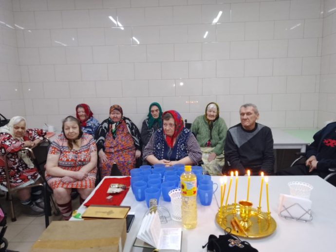 Духовное окормление жителей дома-интерната в поселке Бегичевский много лет осуществляют священнослужители Богородицкого благочиния во главе с протоиереем Стефаном Гривасом.