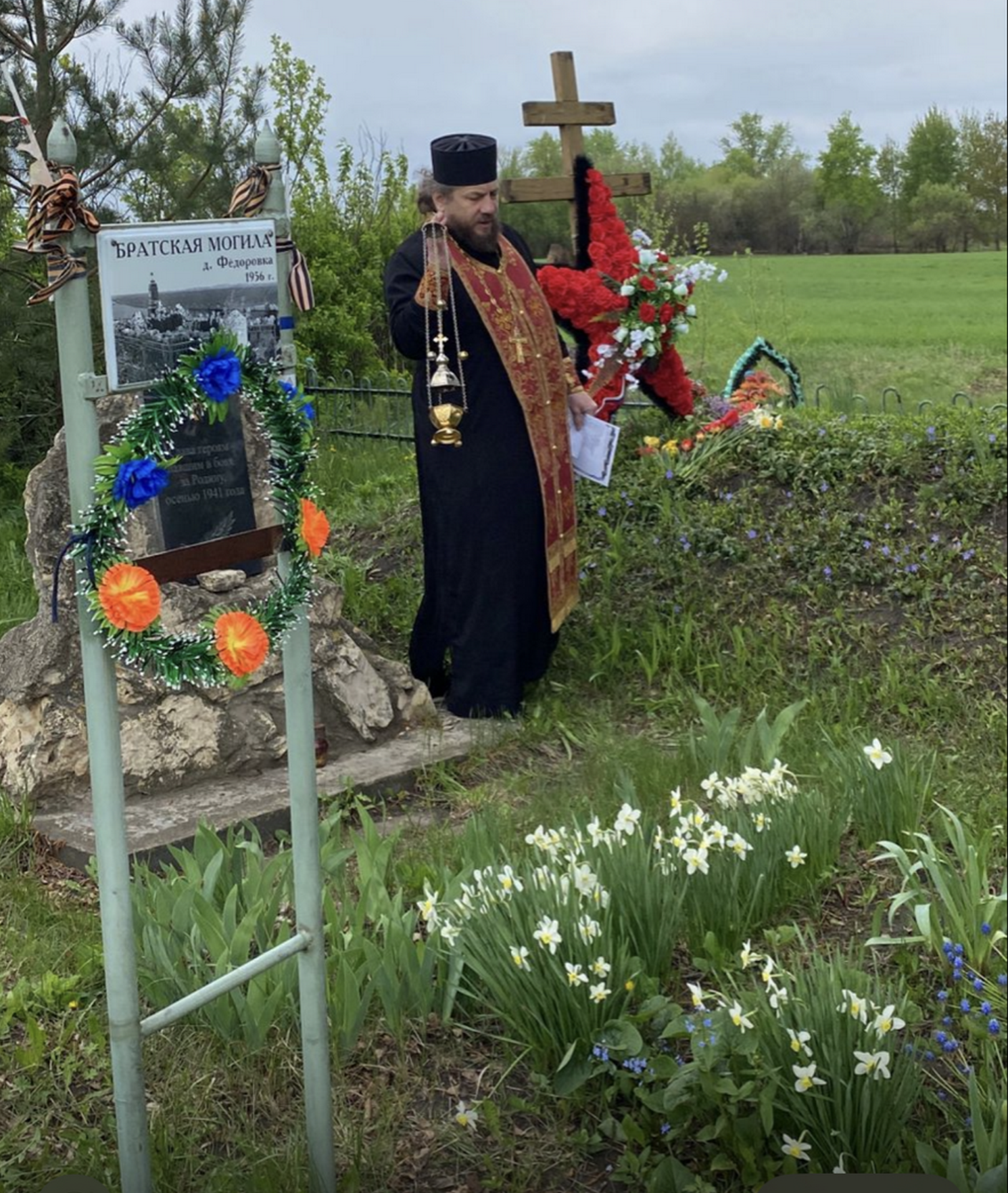 После митинга священник отслужил панихиду на братской могиле в деревне Фёдоровка. Здесь погребены воины, погибшие в боях за родную землю в августе 1941 года. Все присутствующие провозгласили «Вечную память» воинам, отдавшим свою жизнь за веру, народ и Отечество.