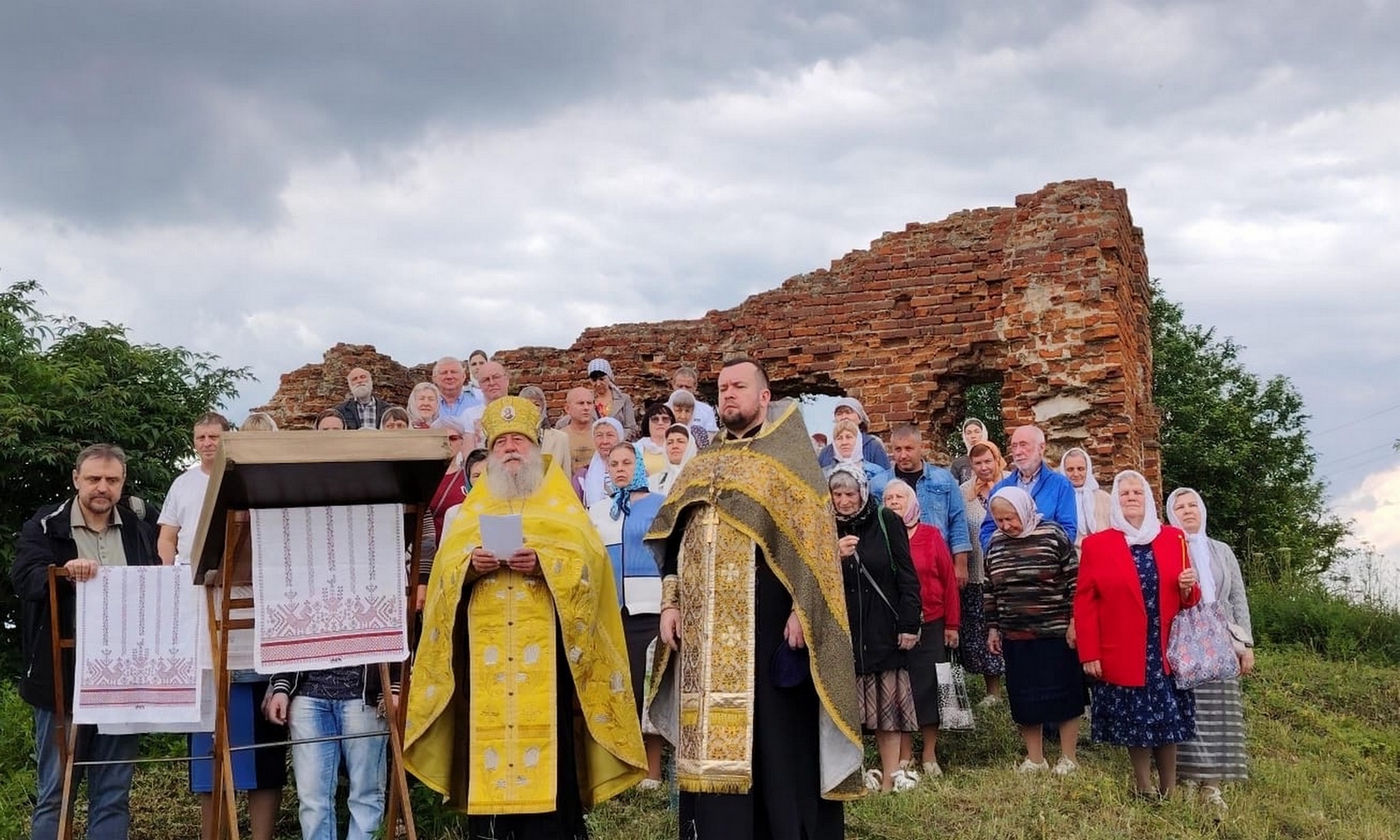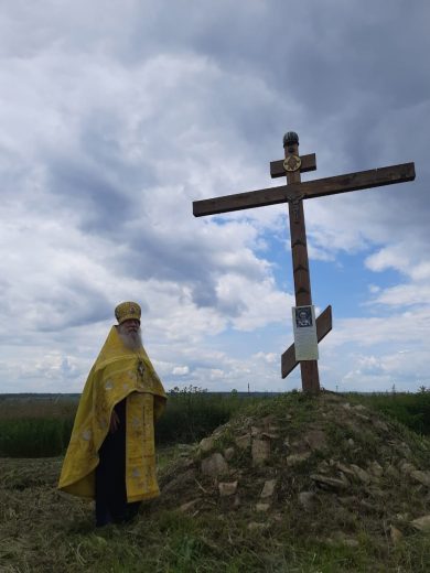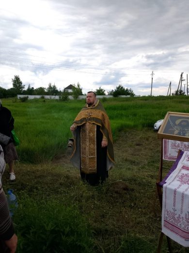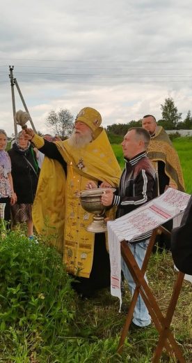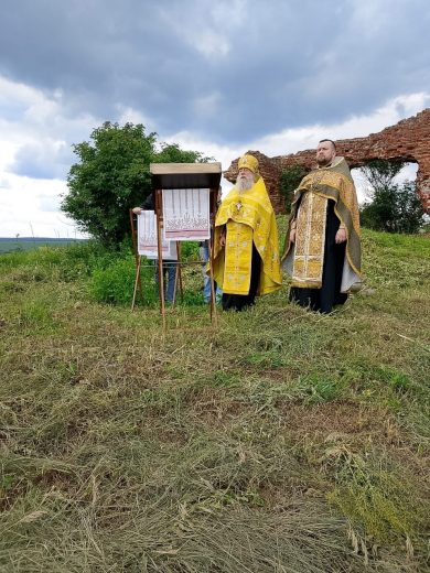 Настоятель храма в честь святой великомученицы Параскевы Пятницы села Дедилово архимандрит Трифон (Бортунов) в сослужении штатного клирика храма иерея Александра Романова совершил молитвенное пение у стен разрушенного храма в честь святителя Тихона, епископа Амафунтского.