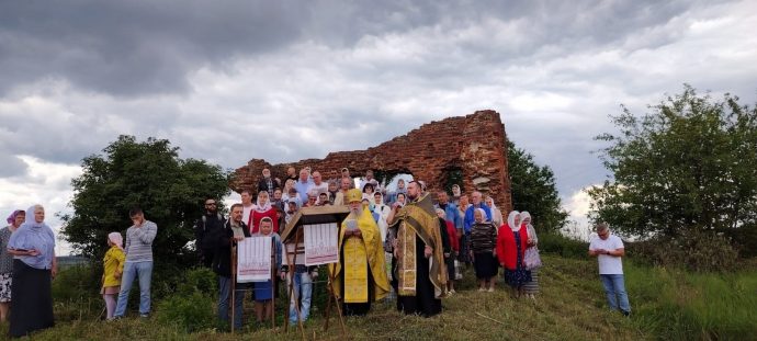 Вместе со священнослужителями молились прихожане, которые совершили крестный ход к разрушенному храму.