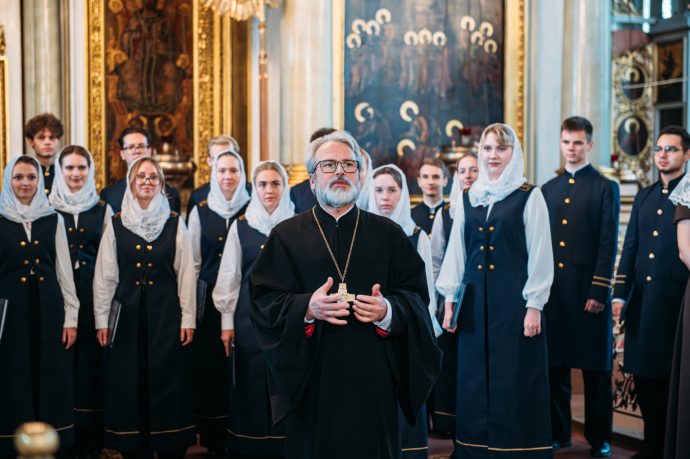 Также хочу выразить особую благодарность хору Санкт-Петербургского горного университета императрицы Екатерины II за участие сегодня в ранней Божественной литургии в кафедральном соборе. Храни вас всех Господь, большое русское спасибо!»