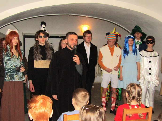 После теплых поздравлений воспитанники приходской школы и их родители погрузились в мир сказки. Артисты Молодежного добровольческого центра Тульской епархии подготовили для праздника поучительную постановку по мотивам известной сказки «Золотой ключик». Зрителям было предложено отправиться в волшебное путешествие и вместе с героями найти ответ на важный вопрос: «Где находится ключ от райских дверей?» Знакомые персонажи, яркие костюмы и неожиданный финал, в котором Буратино обретает истинное понимание смысла человеческого бытия, никого не оставили равнодушным.