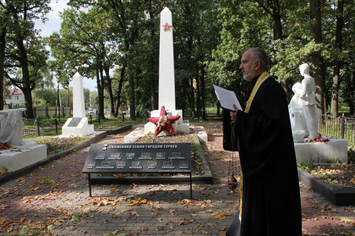 Батюшка совершил панихиду по убиенным воинам, похороненным в братской могиле города Болохово.