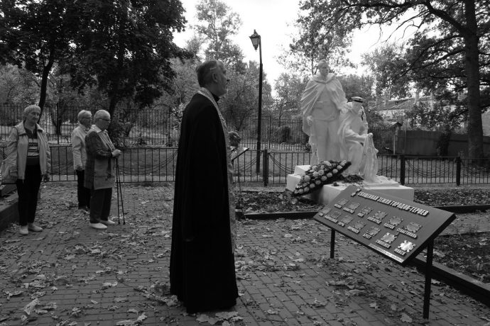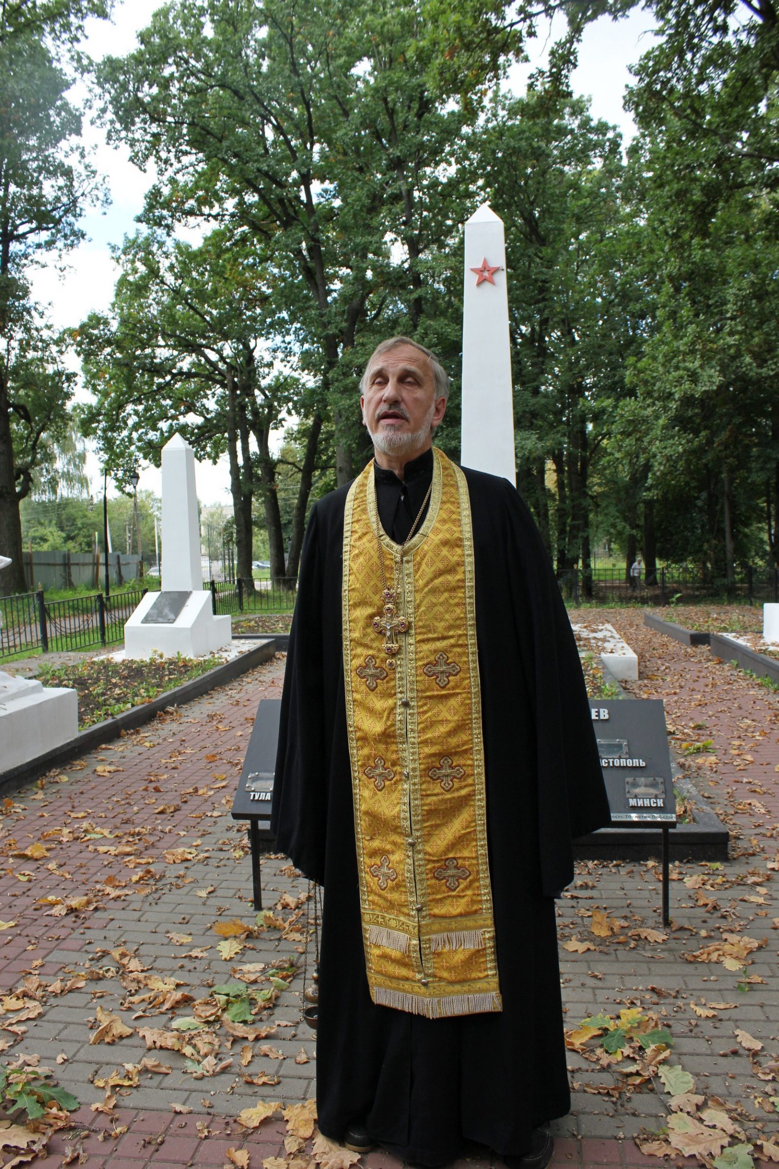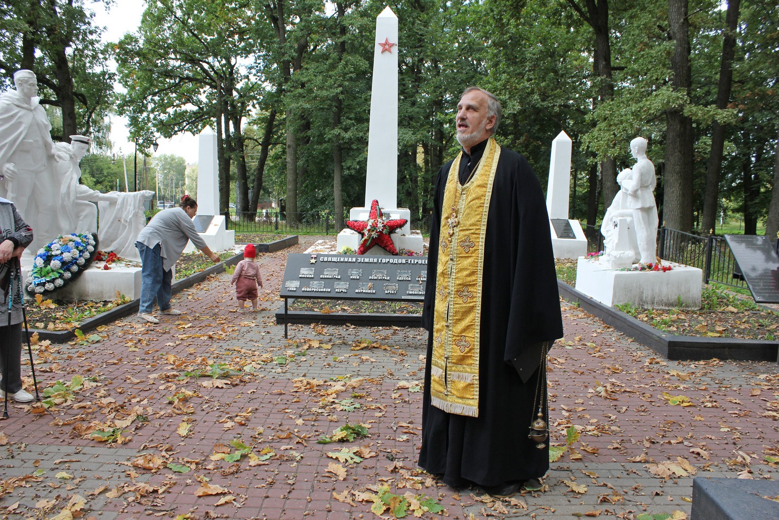 Настоятель местного храма в честь иконы Божией Матери «Споручница грешных» протоиерей Алексий Фролов обратился к неравнодушным жителям города, пришедшим отдать дань памяти павшим. В словах поучения священник подчеркнул, что без исторической памяти благодарных потомков невозможно строить прочное будущее. Вспоминая о воинском подвиге солдат-защитников Отечества, отец Алексий обратился к словам Священного Писания: «Нет больше той любви, как если кто положит душу свою за други своя» (Ин.15:13).