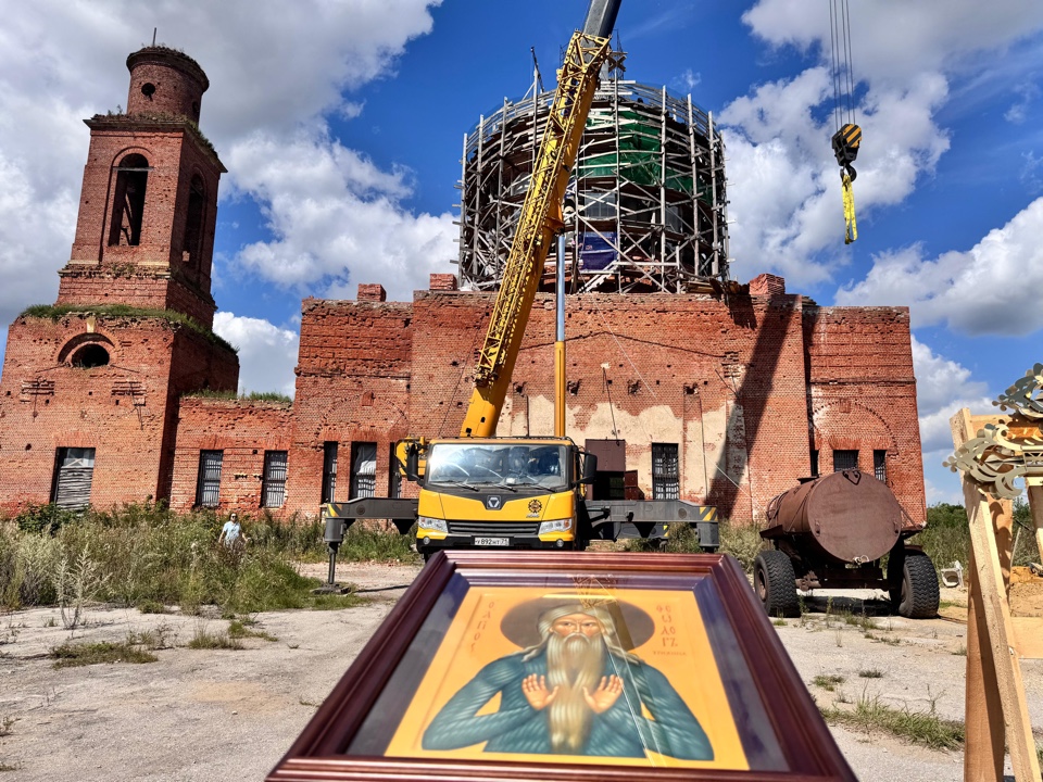 В селе Суханово Кимовского района по благословению митрополита Тульского и Ефремовского Алексия состоялось освящение креста и купола храма в честь преподобного Феодора Трихины.