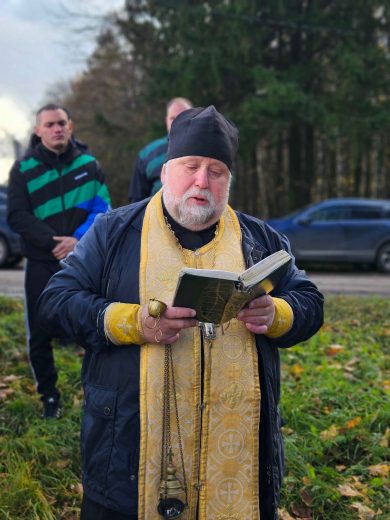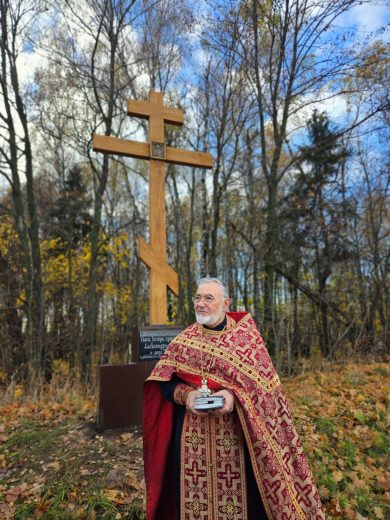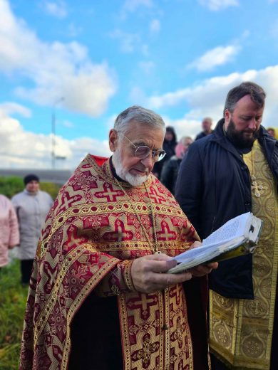 После освящения креста к собравшимся обратился благочинный протоиерей Стефан Гривас с пастырским словом, в котором поздравил присутствующих с долгожданным событием, выразил благодарность всем, кто содействовал совершению важного духовного дела, преподал Божие благословение, чтобы Господь хранил и оберегал замечательное поселение и людей, живущих в нем.