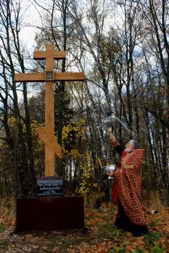 Чин освящения креста возглавил благочинный Богородицкого округа, настоятель Свято-Казанского храма города Богородицка протоиерей Стефан Гривас. Ему сослужили: благочинный Воловского округа, настоятель храма Успения Пресвятой Богородицы города Богородицка протоиерей Алексий Резухин, настоятель Покровского храма села Новопокровское иерей Алексий Камаев.