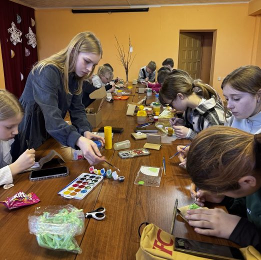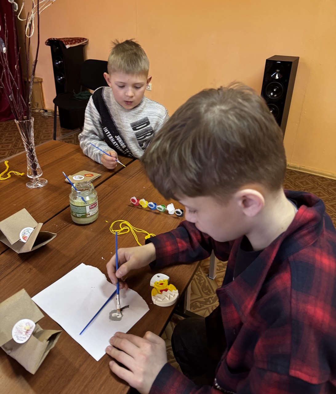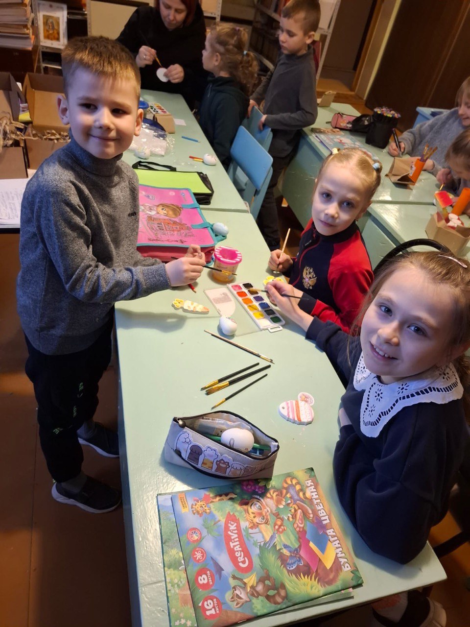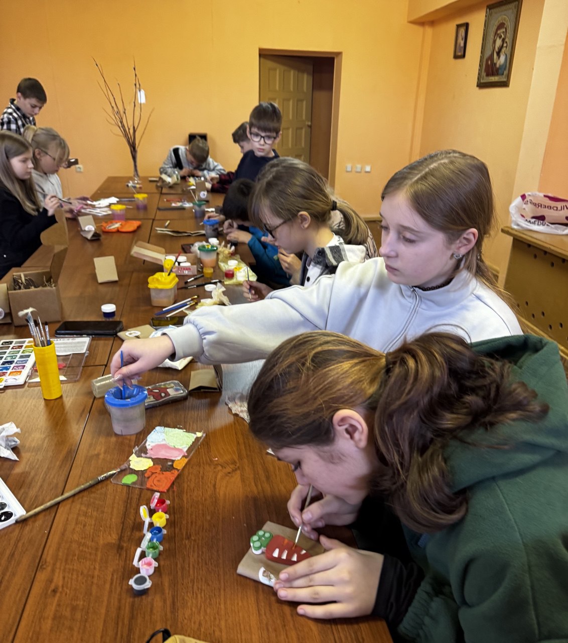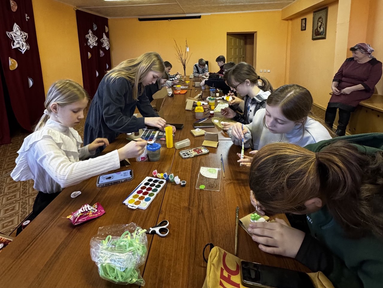 Во время весенних каникул в Духовно-просветительском центре в честь священномученика Петра Павлушкова Свято-Троицкого храма села Супонь ученики воскресной школы участвовали в богослужениях и готовили пасхальные подарки близким.