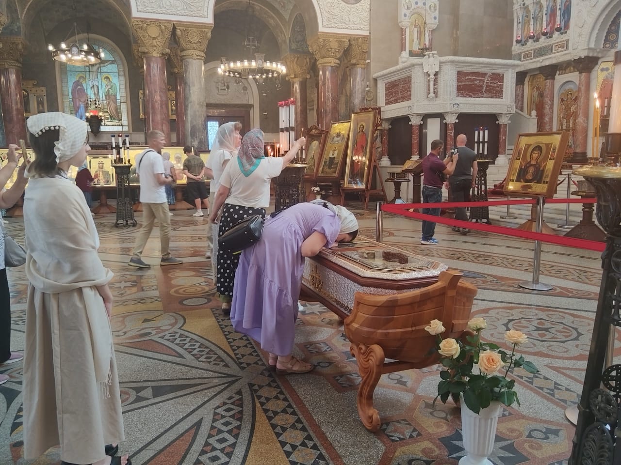 На следующий день паломничества группа посетила ставропигиальный Никольский морской собор, где учачтники приложились к мощам адмирала Феодора Ушакова, которые прибыли из Санаксарского монастыря – места их постоянного пребывания.