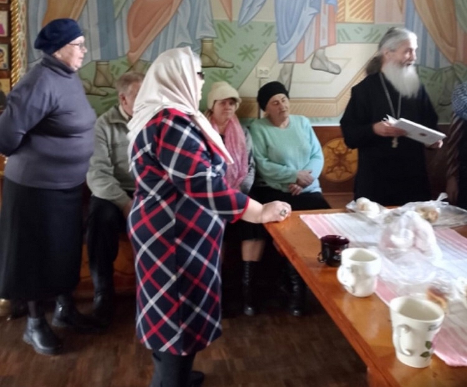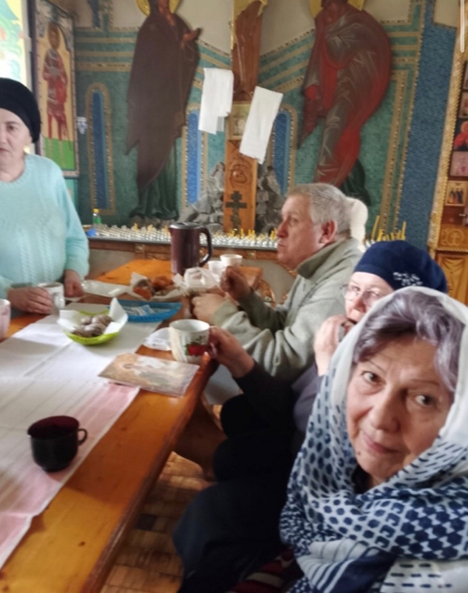 Затем батюшка пригласил гостей на чаепитие. Паломники поблагодарили настоятеля храма, архимандрита Трифона (Бортунова), и штатного клирика храма иерея Олега Никору за возможность помолиться в стенах Дедиловского храма.