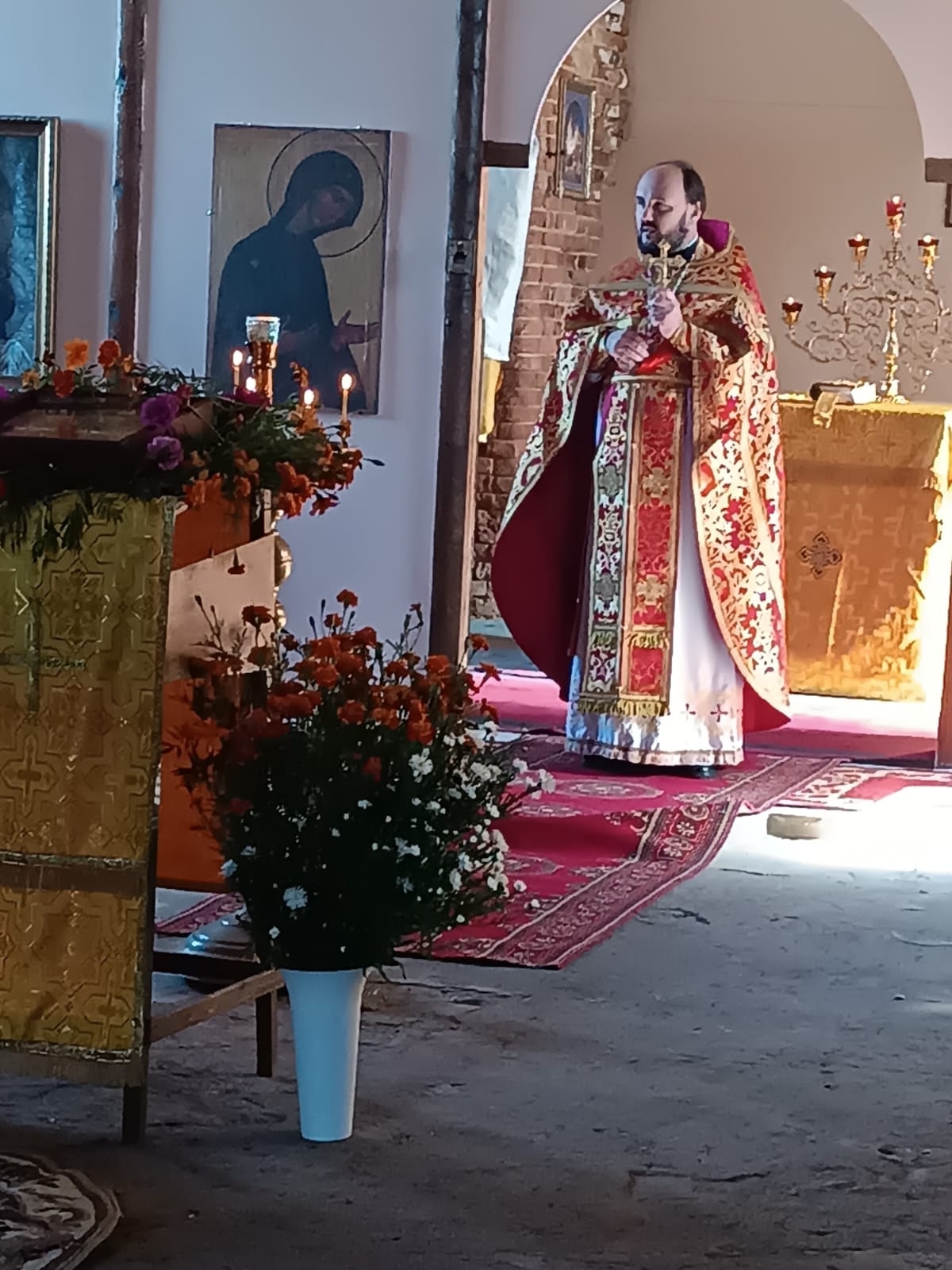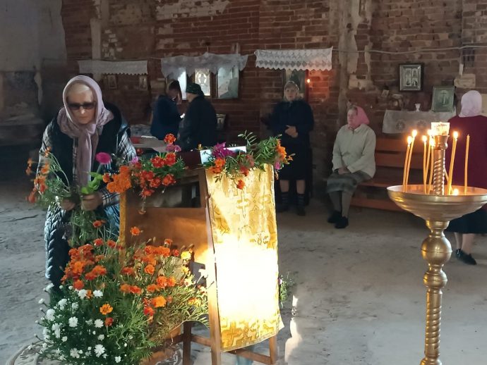 В руинированном храме Вознесения Господня села Сторожа Ефремовского района была отслужена Божественная литургия.
