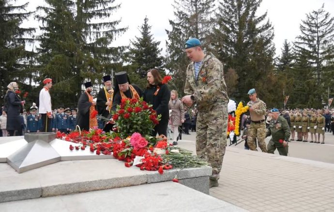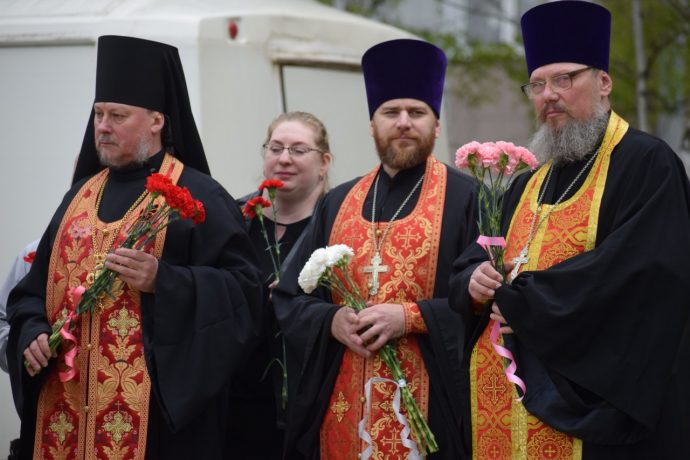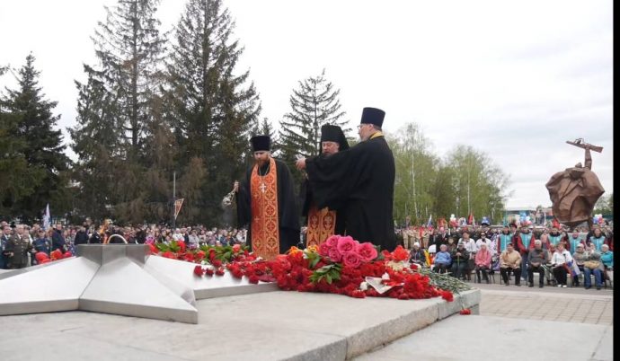 В завершение торжества участники и зрители парада собрались на городской площади Победы у Вечного огня, где священнослужители Узловского благочиния во главе с благочинным игуменом Силуаном (Ершовым) совершили заупокойную литию по павшим героям Великой Отечественной войны.