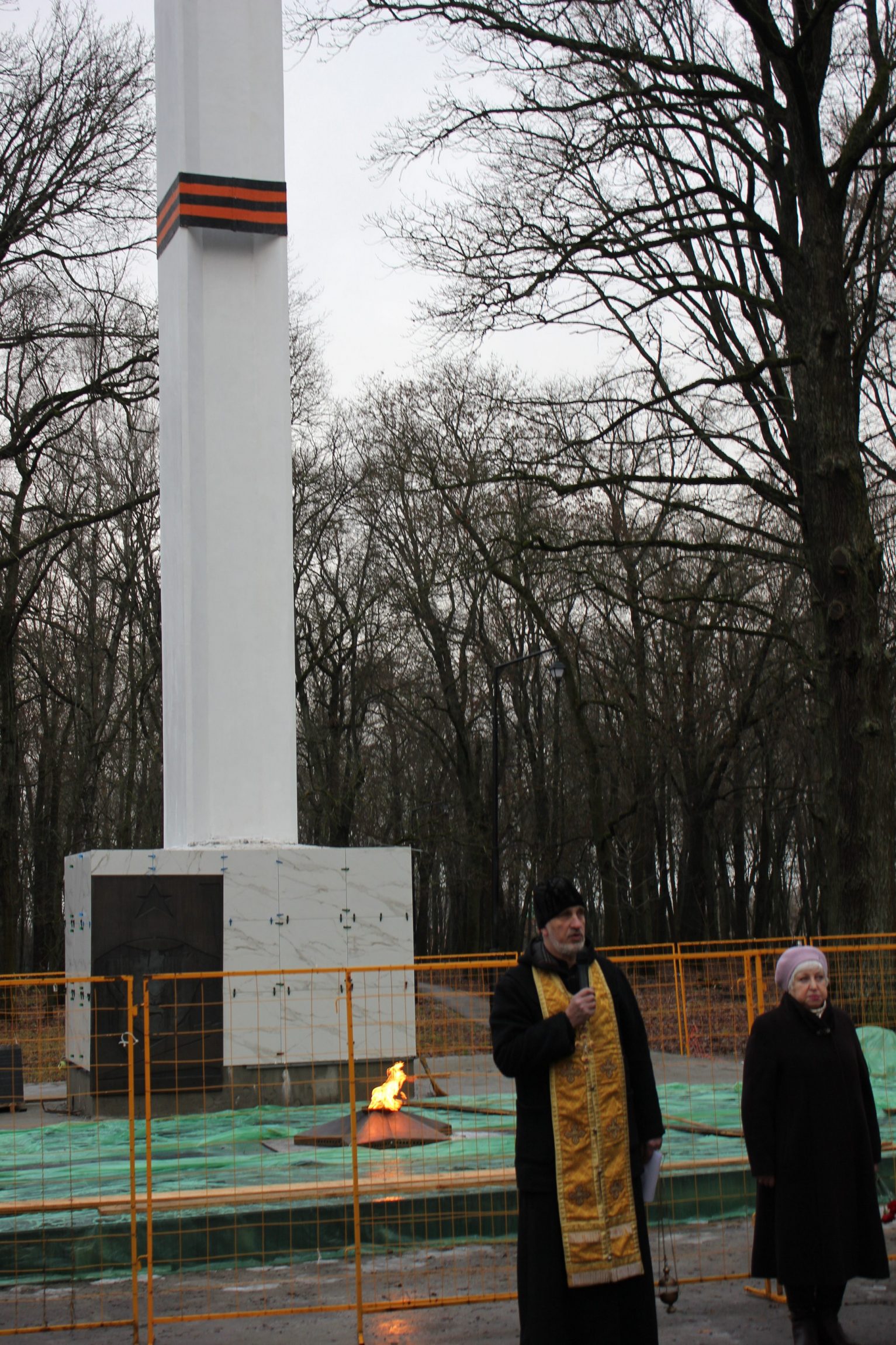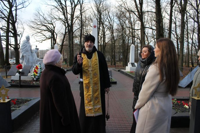 Настоятель храма в честь иконы Божией Матери «Споручница грешных» протоиерей Алексий Фролов призвал жителей города не забывать своего прошлого, чтобы не допустить повторения страшной войны на этой земле: «Через историческую память передаются ценности, традиции и идеалы предшествующих поколений. История помогает людям понять свое прошлое, а значит, и настоящее, а также дает возможность строить будущее, исходя из уроков, извлеченных из исторического опыта».