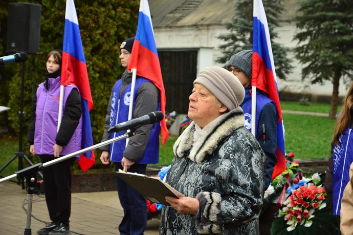На митинге выступила Почетный гражданин города Ефремов и Ефремовского района Римма Карпова. Она прочитала стихотворение, посвященное не вернувшимся с войны.