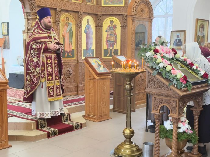 Торжества начались с Божественной литургии, которую возглавил настоятель храма иерей Павел Гребёнкин. В богослужении также принял участие иерей Виталий Хрустиков, настоятель храма святителя Луки Крымского посёлка Восточный.