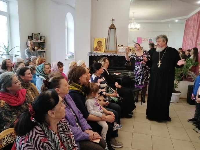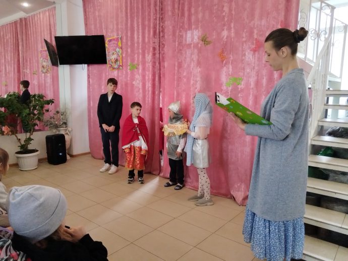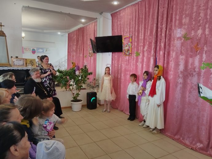 Затем воспитанники выступили с пасхальными номерами: песнями, стихотворениями итеатральным представлением, посвящёнными празднику.