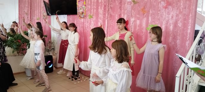 Дети исполнили песни «Вербное воскресенье»,«Песенка про ангелов», «Праздник Воскресения», а также прочитали стихотворение Р.А. Кудашевой«Вербочки».