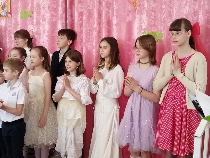 Преподаватель воскресной школы и ведущая Анастасия Цапаева продолжила: «Светлым праздником величают люди Пасху Христову. Подобно тому, как солнце светит и греет нас, так свет души и радость сердца исходят от Спасителя нашего. От сердца к сердцу, от души к душе торопится радостная весть – Христос Воскрес! Воскрес однажды, чтобы навсегда озарить мир светом Своего Воскресения. В светлой радости сливаются воедино небо и земля, ангелы и люди. И как не радоваться в великий и святой день Воскресения Христова!»