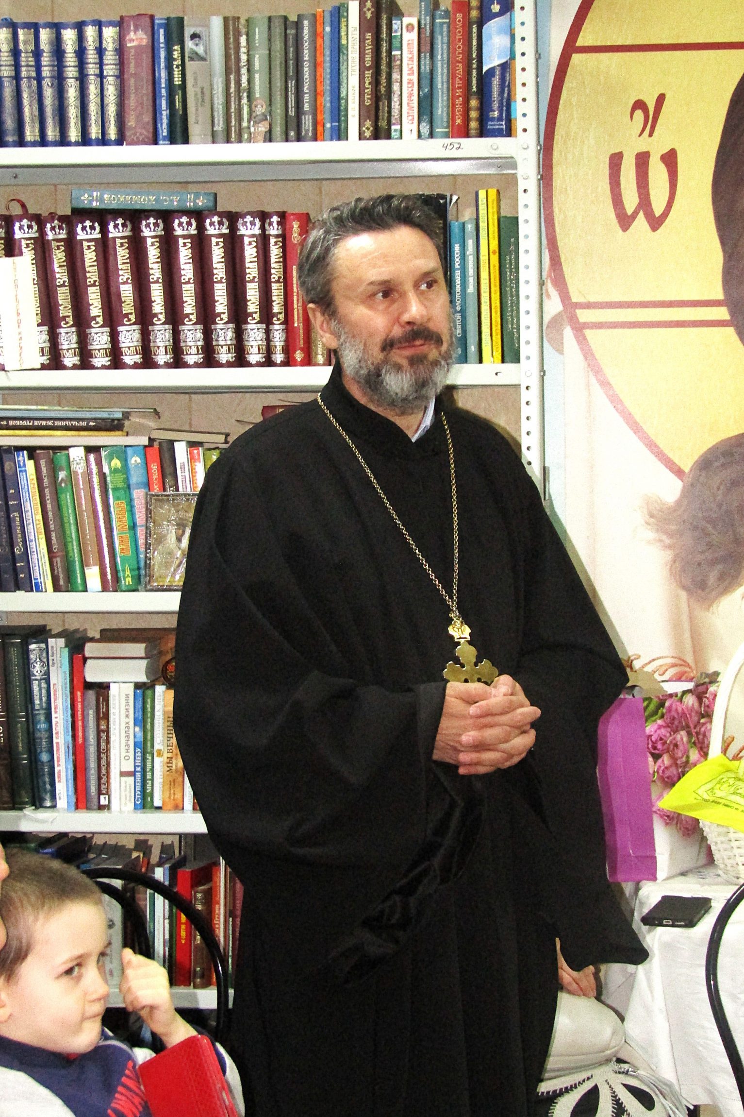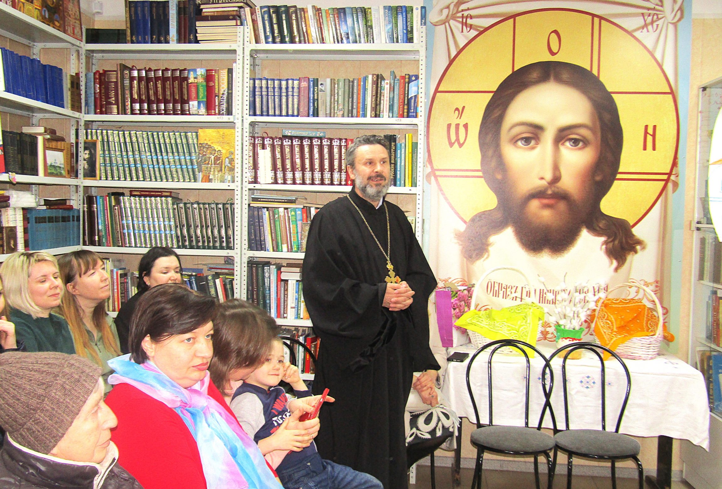 Сегодня мы собрались в стенах воскресной школы, чтобы соборно встретить светлый праздник Воскресения Христова и искренне поделиться его радостью друг с другом. Я вижу по вашим лицам, эмоциям, как вы рады прийти на эту встречу. Я тоже искренне рад всех вас видеть сегодня. Желаю вам здоровья, радости, счастья, любви, пасхального радостного настроения и помощи Божией во всех благих начинаниях! Христос Воскресе!»