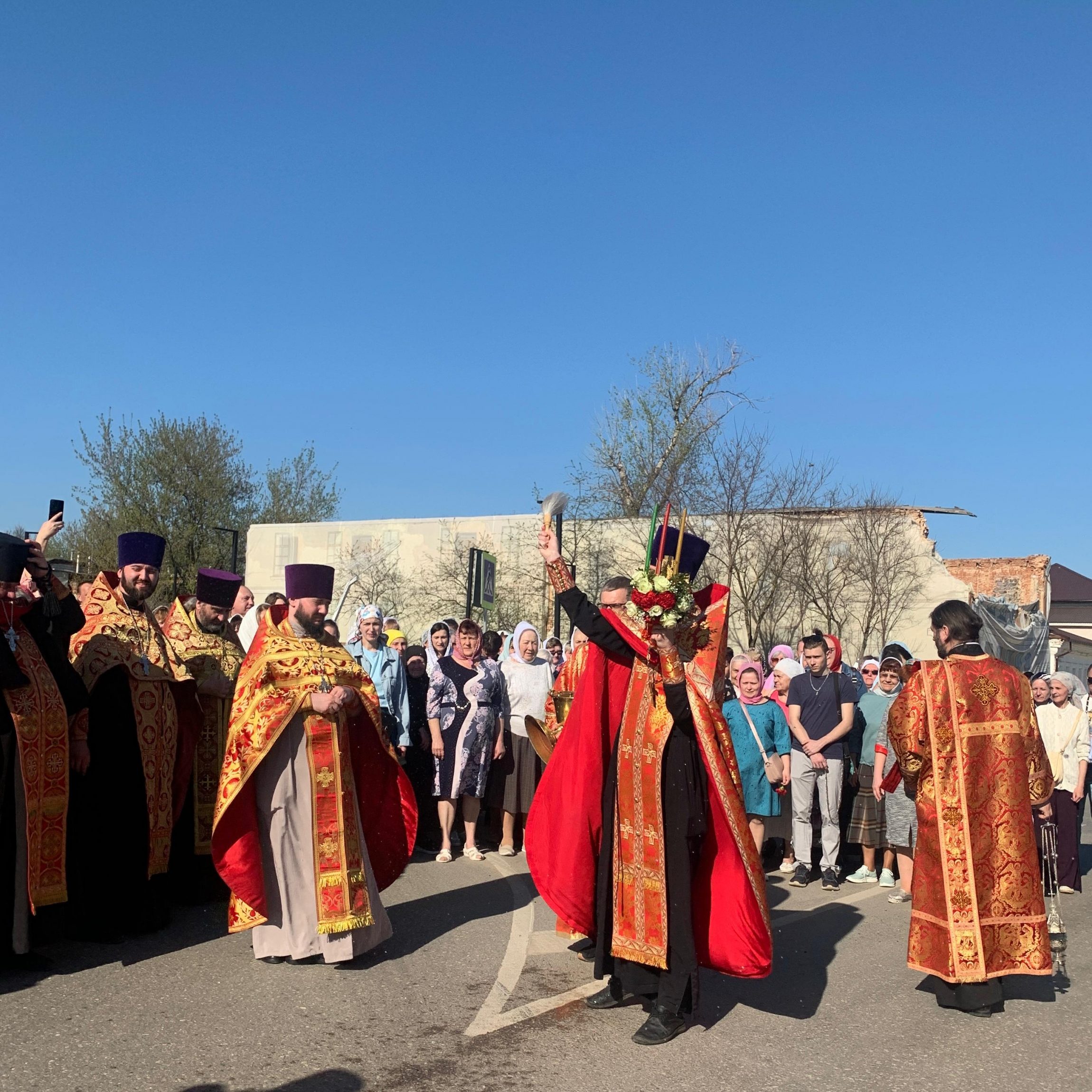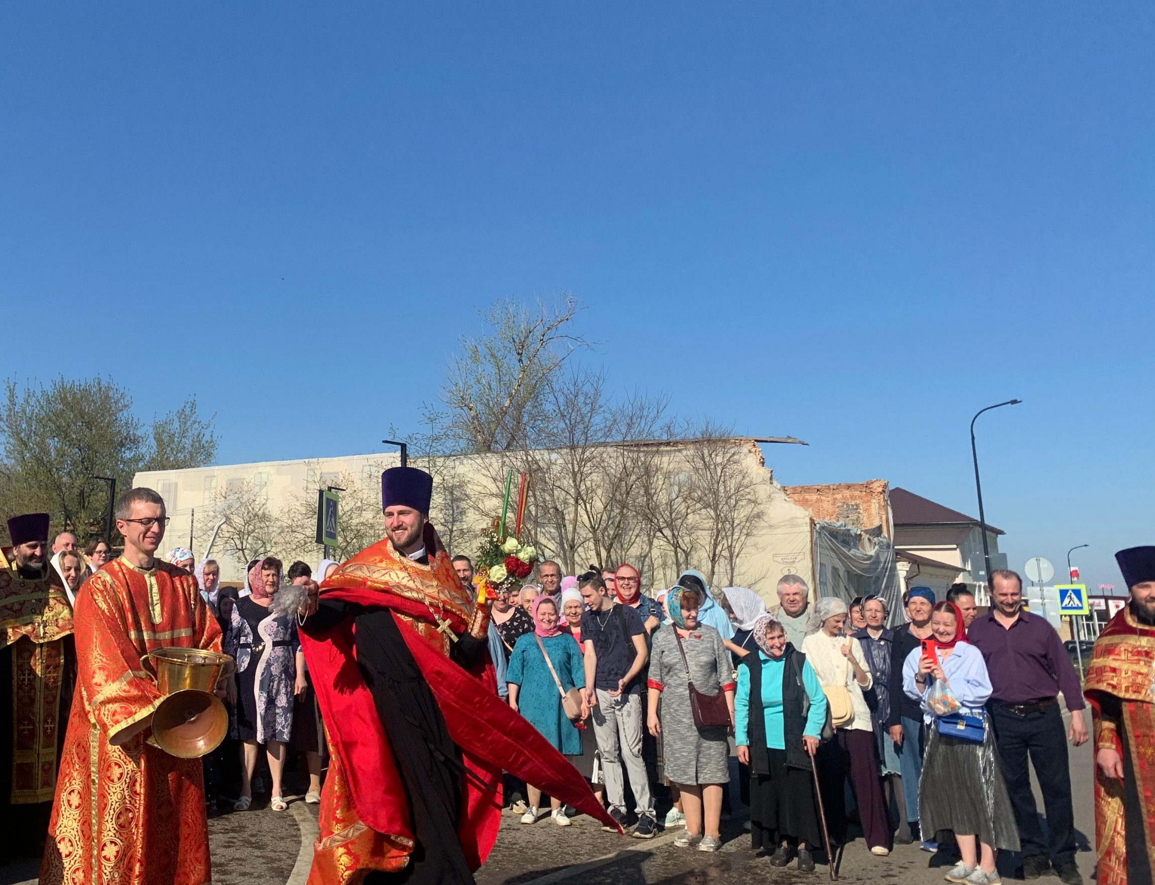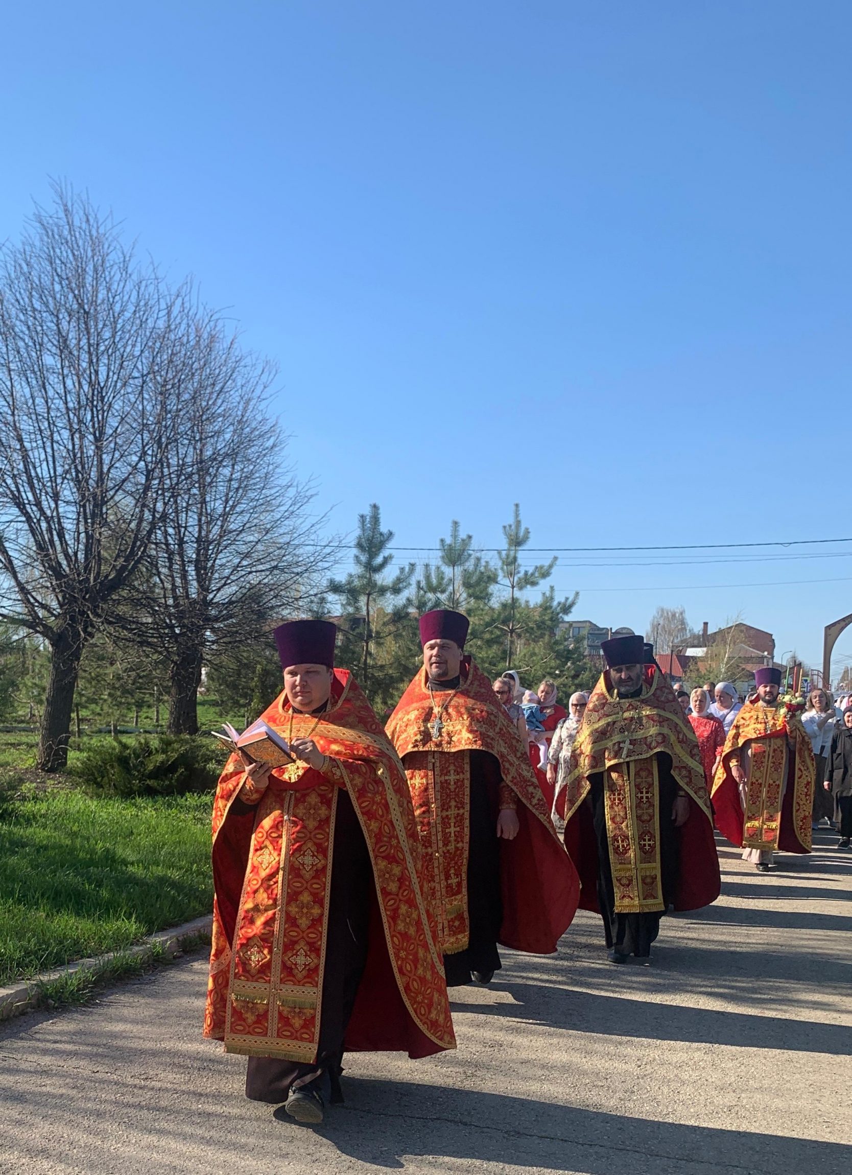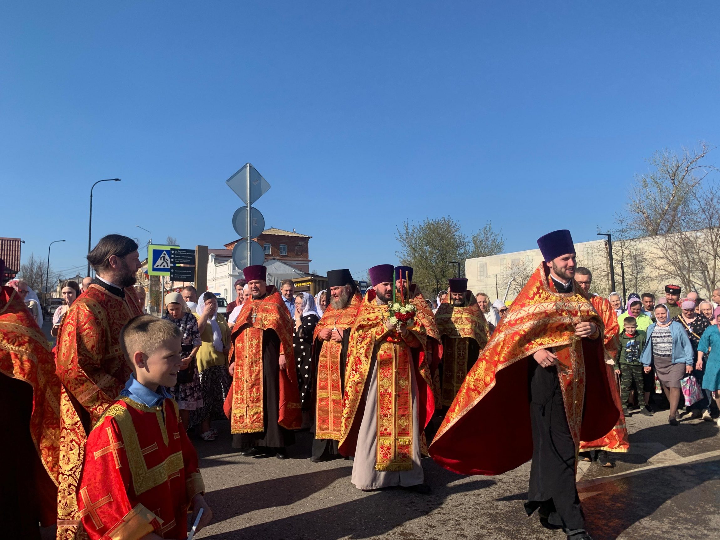 Люди с радостью несли хоругви и иконы. На каждом перекрестке по пути следования крестный ход делал молитвенные остановки, которые сопровождались пением пасхальных песнопений и чтением святого Евангелия. Священники окропляли народ святой водой и возглашали радостное «Христос Воскресе!» Пасхальная радость передавалась всем, кто встречался на пути – от прохожих до водителей. Многие останавливались и благоговейно крестились, кто-то снимал на телефон, а некоторые присоединялись к крестоходцам. Колокольный звон сопровождал крестный ход всё время его движения. Воспитанники воскресных школ городских храмов принимали активное участие в торжественном шествии.