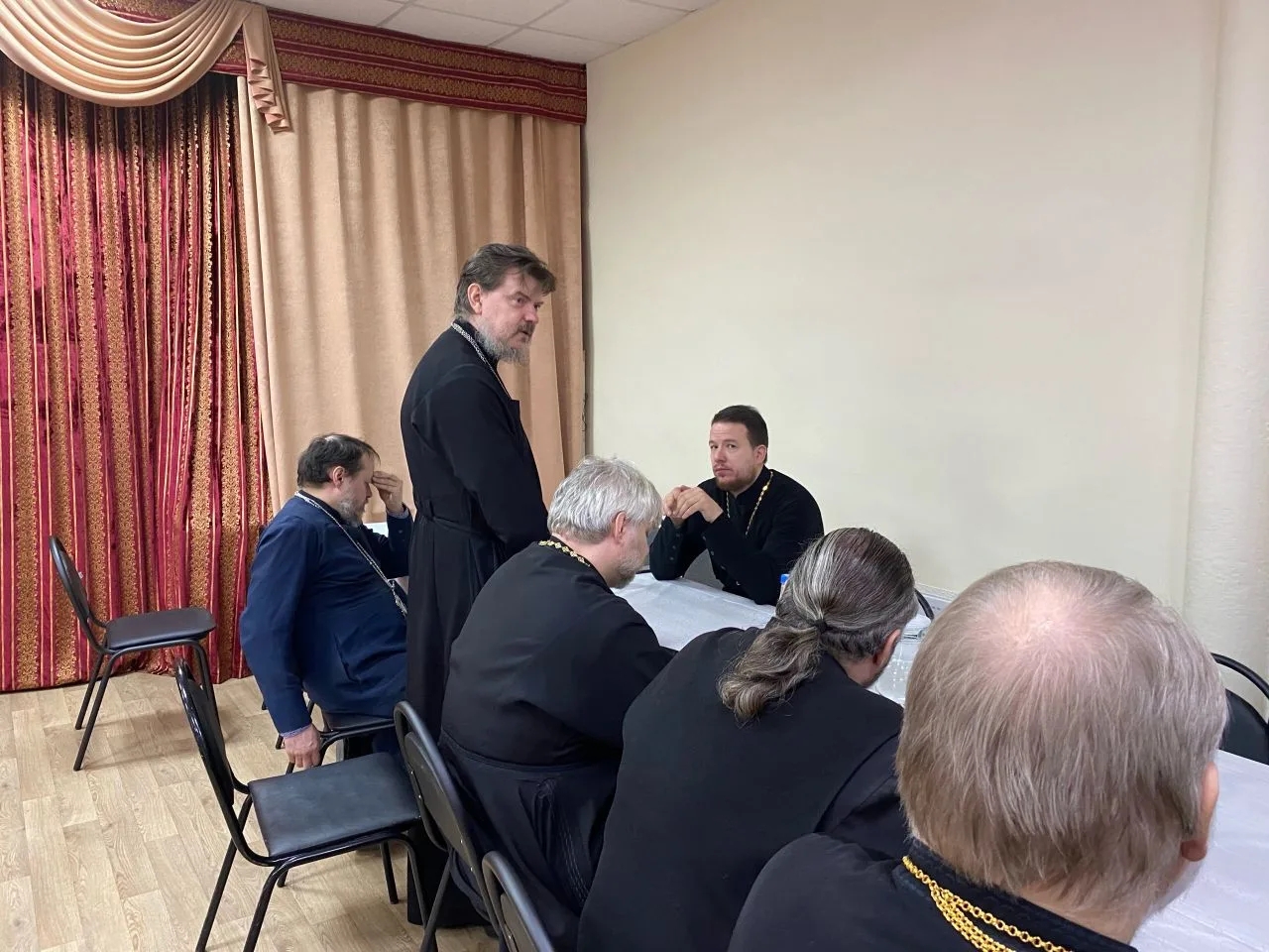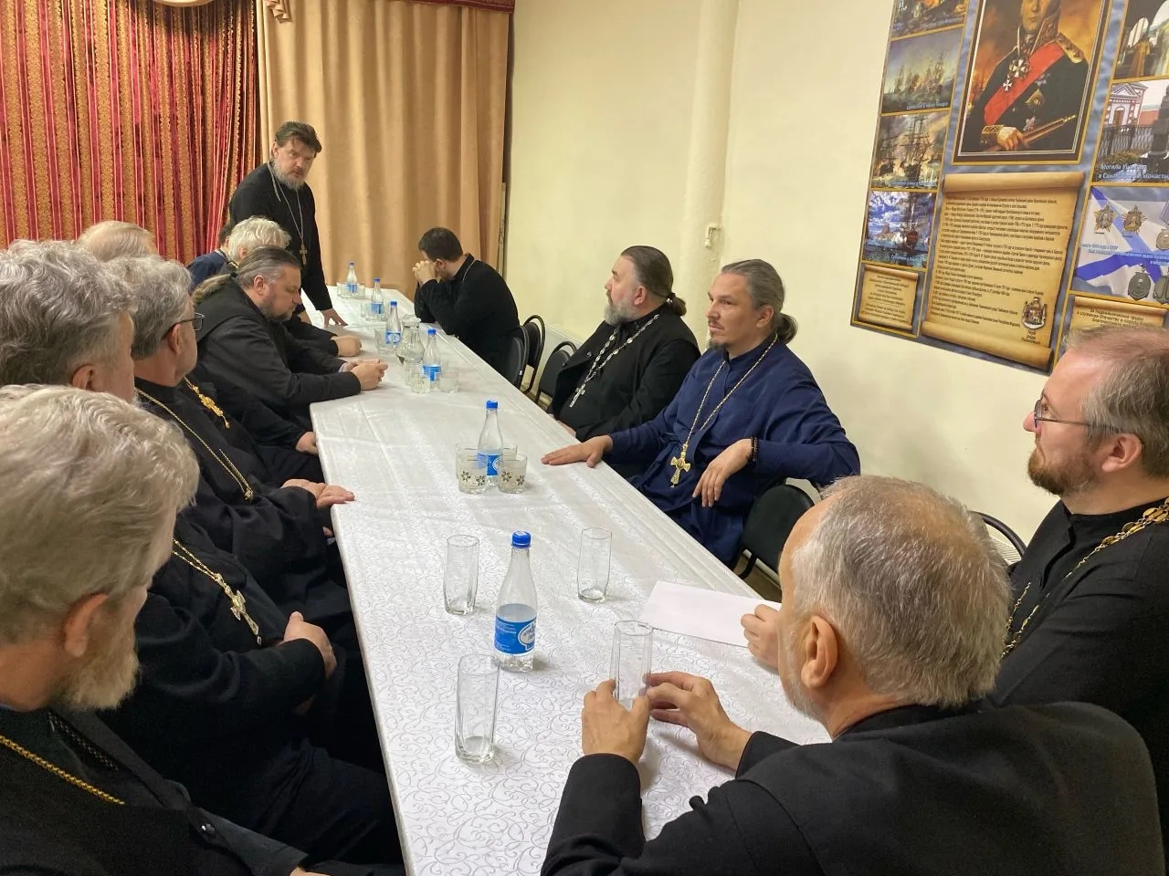 Одна из рабочих тем была связана с организацией очередной смены детского походного лагеря «Казачий стан». Секретарь собрания, помощник благочинного, председатель отдела по взаимодействию с казачеством иерей Антоний Фадеев поделился предварительной организационной информацией для настоятелей по поводу предстоящей летней смены православной молодежи. Предполагается провести первую рабочую встречу с организаторами в мае, а уже сам 3-дневный лагерь провести в первой половине июля.