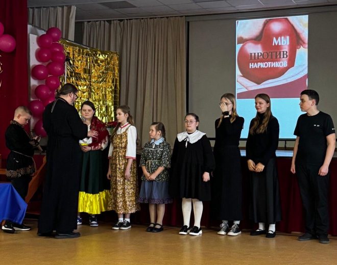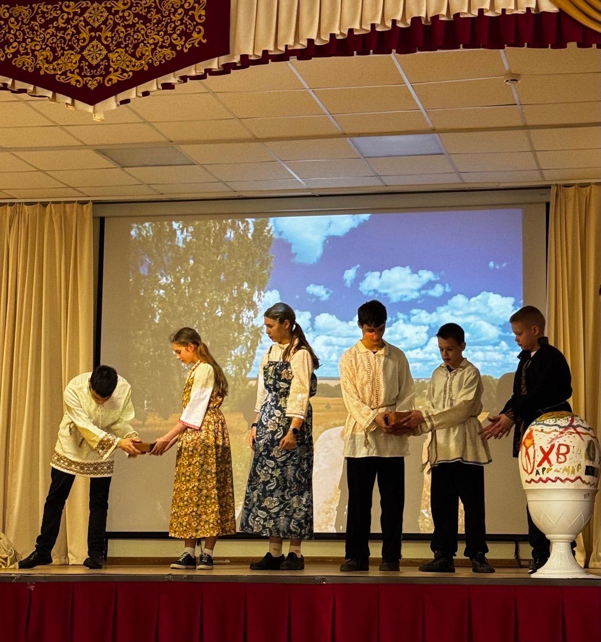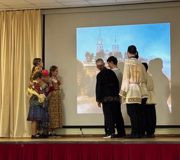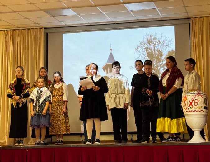 Праздник начался с постановки Марины Эрнестовны Прониной «Живи, мой храм, живи!», которую представили ребята из театрального коллектива «Новые звезды», лауреаты регионального этапа Международного конкурса детского творчества «Красота Божьего мира».