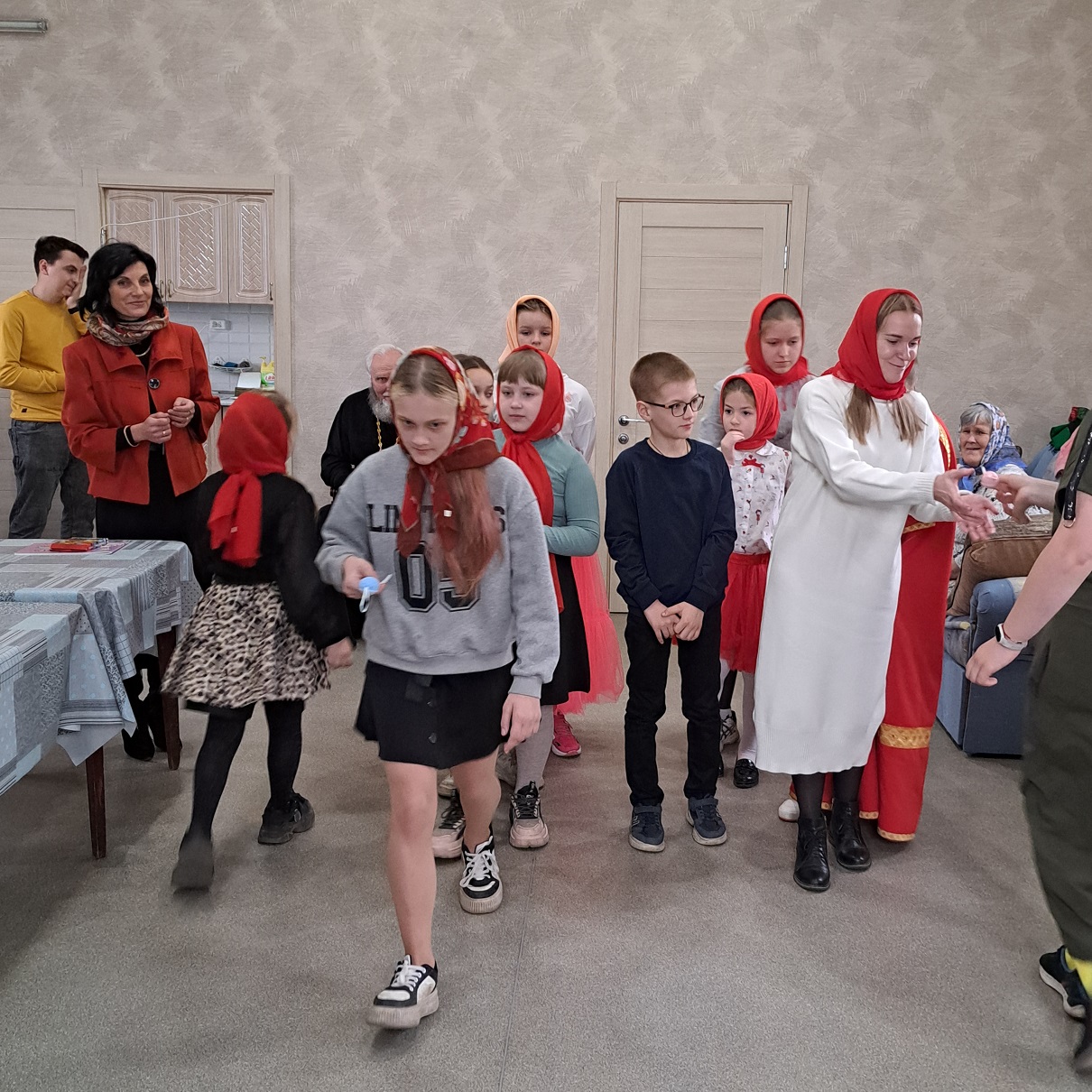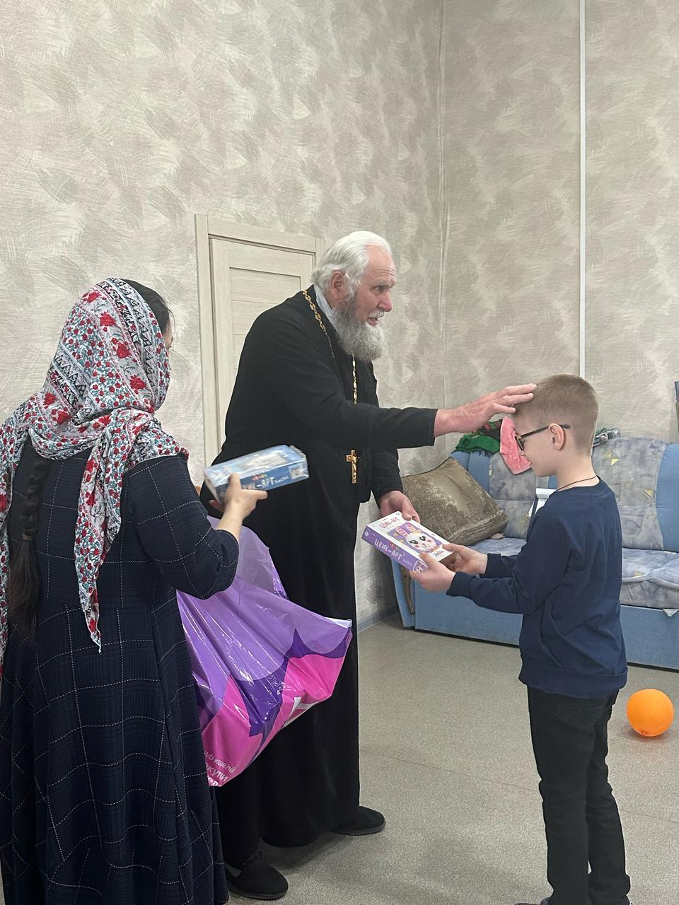 В завершение мероприятия иерей Виктор Соловьев вручил ребятам сладкие подарки и наборы для творчества, а также поздравил собравшихся со Светлым Христовым Воскресением: «Христос Воскресе, дорогие мои! С праздником Пасхи Господней! Спасибо всем вам за такое теплое, радостное и душевное мероприятие. Так приятно видеть ваши сияющие пасхальной радостью лица, особенно детские с их наивной непосредственностью в восприятии Евангельских истин. И хочется пожелать нам всем, чтобы память о главном событии Евангелия, эта пасхальная радость не заканчивалась отданием праздника, а пребывала в наших сердцах постоянно, как вера и любовь к Господу нашему Иисусу Христу! Христос Воскресе!