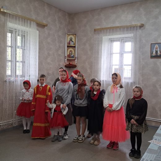 Открыли познавательный час общим исполнением тропаря Пасхи, после чего ведущие рассказали о православных традициях празднования главного праздника всех христиан, о том, откуда пошел обычай красить яйца, почему пекут и освящают куличи, о символизме творожной пасхи и о значении праздника Антипасхи.