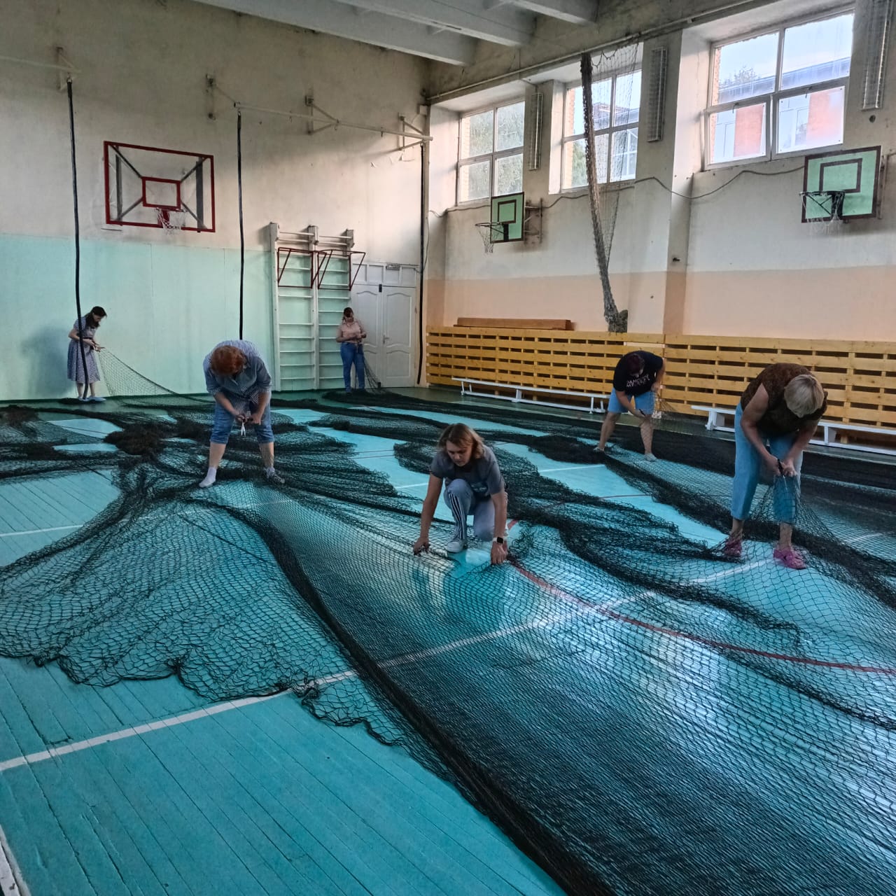 Пункт, о котором идет речь, расположен в помещении МБДОУ «Детский сад № 19» города Новомосковска и был организован в сентябре 2023 года участниками волонтерского движения «Нашим». В первые месяцы после открытия там плели сети сотрудники детского сада. Команда была небольшой, рабочих рук не хватало, волонтеры обратились за помощью в храм Всех святых, и настоятель храма иерей Феодор Передиреев стал регулярно объявлять прихожанам о наборе добровольцев. Люди откликались, и, хотя практически ни у кого не было навыка в плетении сетей, прихожанки храма перенимали опыт у сотрудниц детского сада, а затем уже сами обучали вновь пришедших. Вскоре в пункте заработала слаженная команда, которая на сегодняшний день изготовила и отправила на передовую более 310 сетей (более 6000 квадратных метров изделия).
