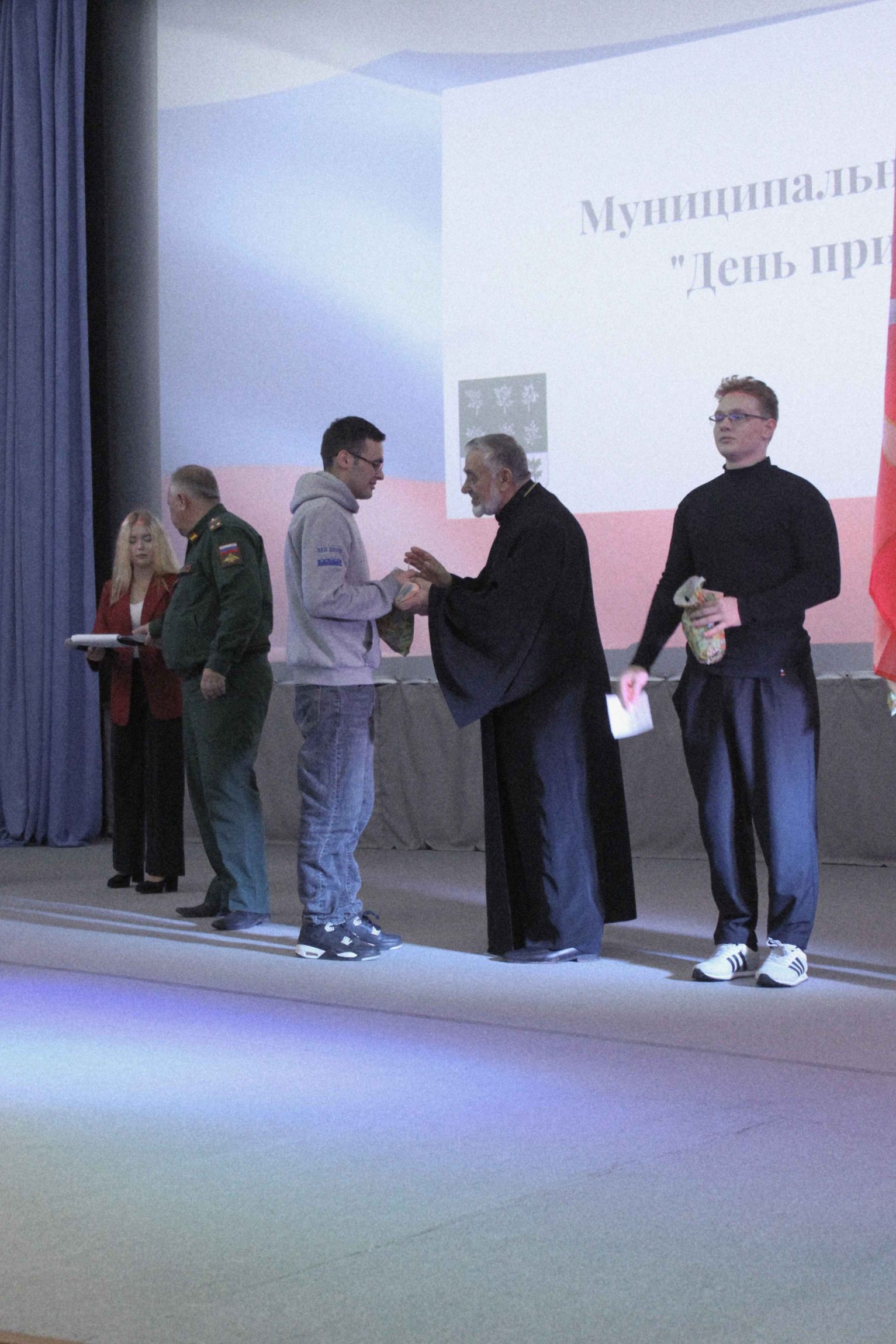 Благочинный Богородицкого округа протоиерей Стефан Гривас принял участие в патриотическом мероприятии «День призывника», в ходе которого будущим воинам были вручены повестки на службу в ряды Вооруженных Сил Российской Федерации.