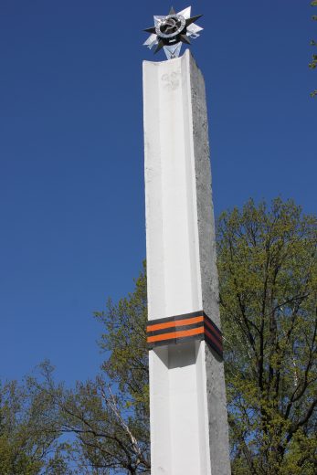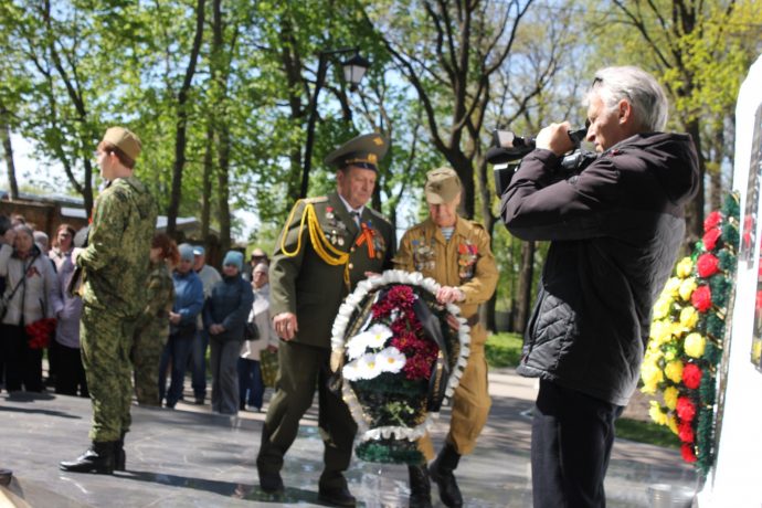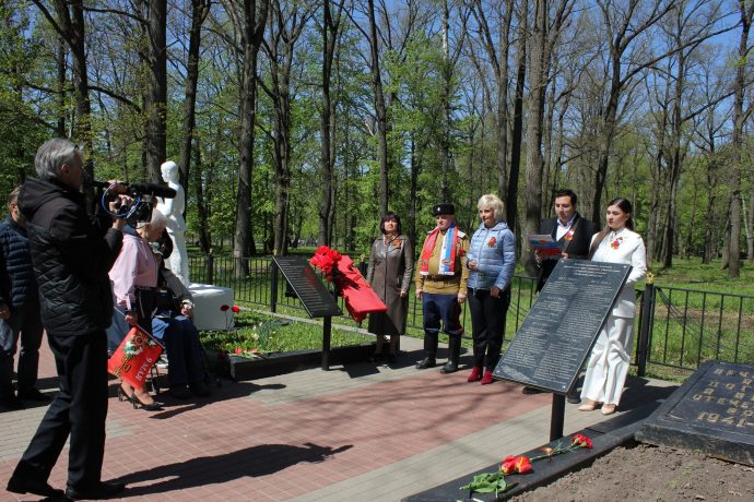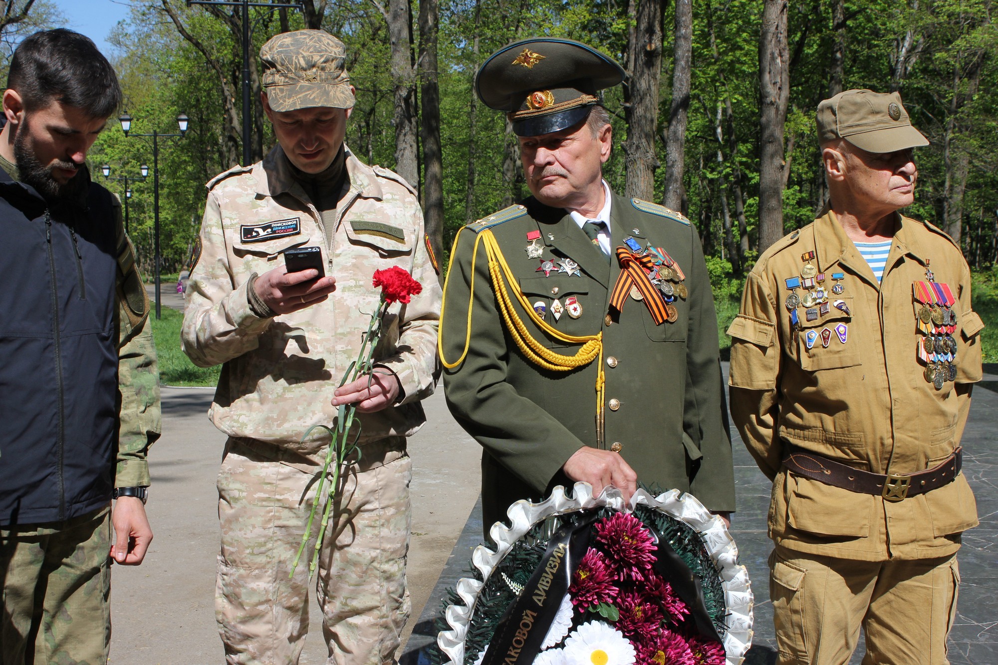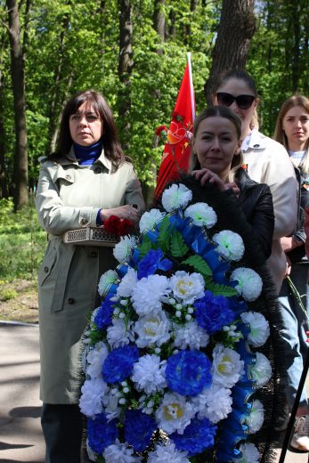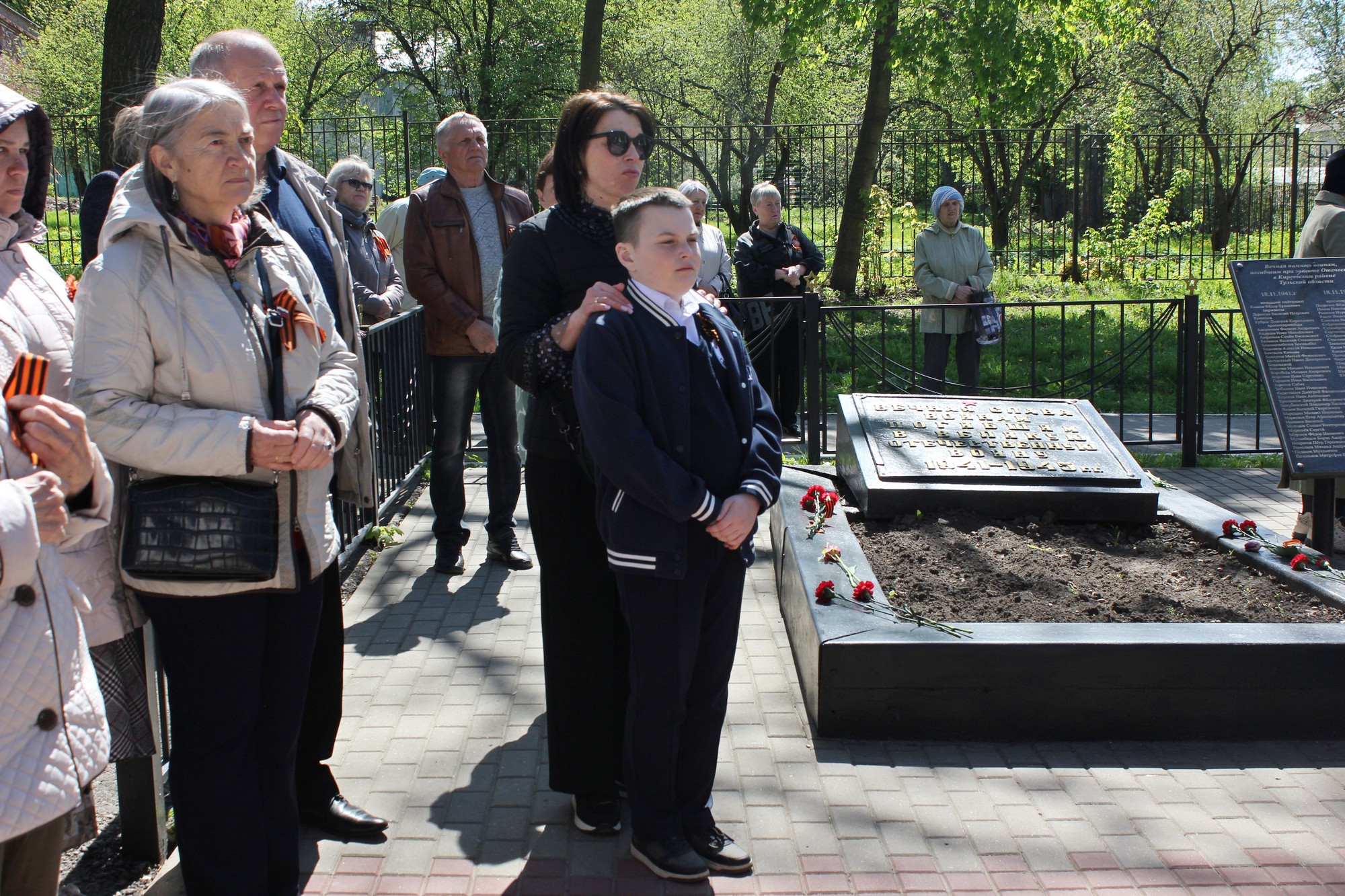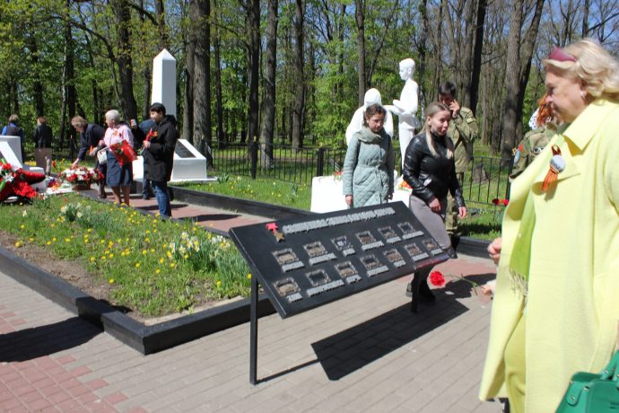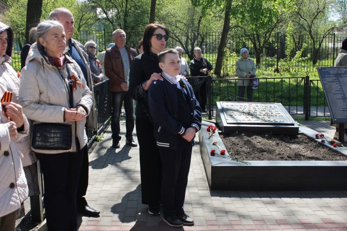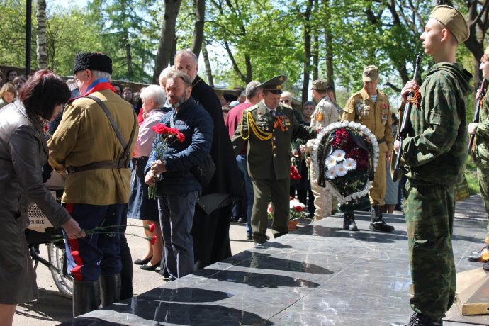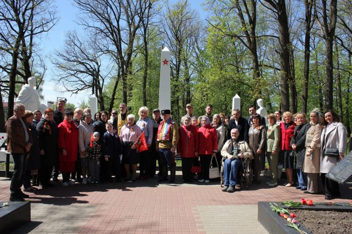 Затем участники митинга почтили минутой молчания всех павших на полях сражений и умерших в мирное время ветеранов. Присутствующие возложили венки и цветы к мемориалу «Стела» и братскому захоронению воинов Советской армии.