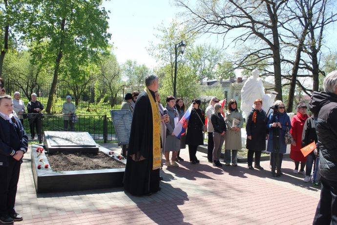По окончании церемонии открытия мемориальной доски отец Алексий Фролов совершил панихиду по воинам, которые отдали свою жизнь, защищая Отечество от врага.