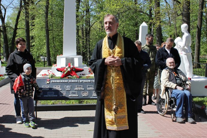Настоятель храма в честь иконы Божией Матери «Споручница грешных» города Болохово протоиерей Алексий Фролов принял участие в городских памятных мероприятиях, посвящённых Дню Победы.