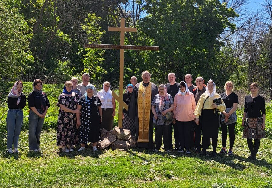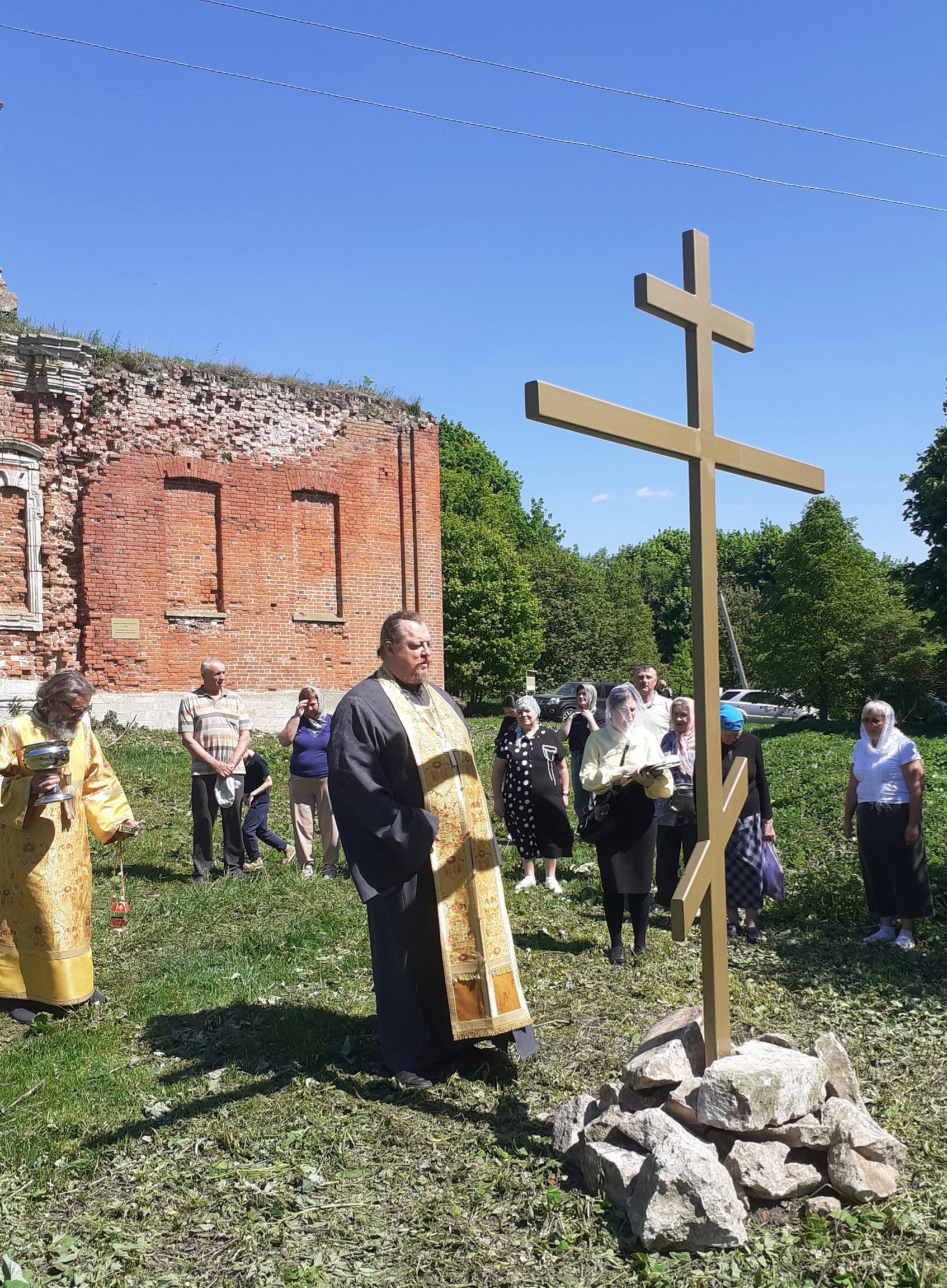 У стен Никольского храма села Руднево установили и освятили поклонный крест.