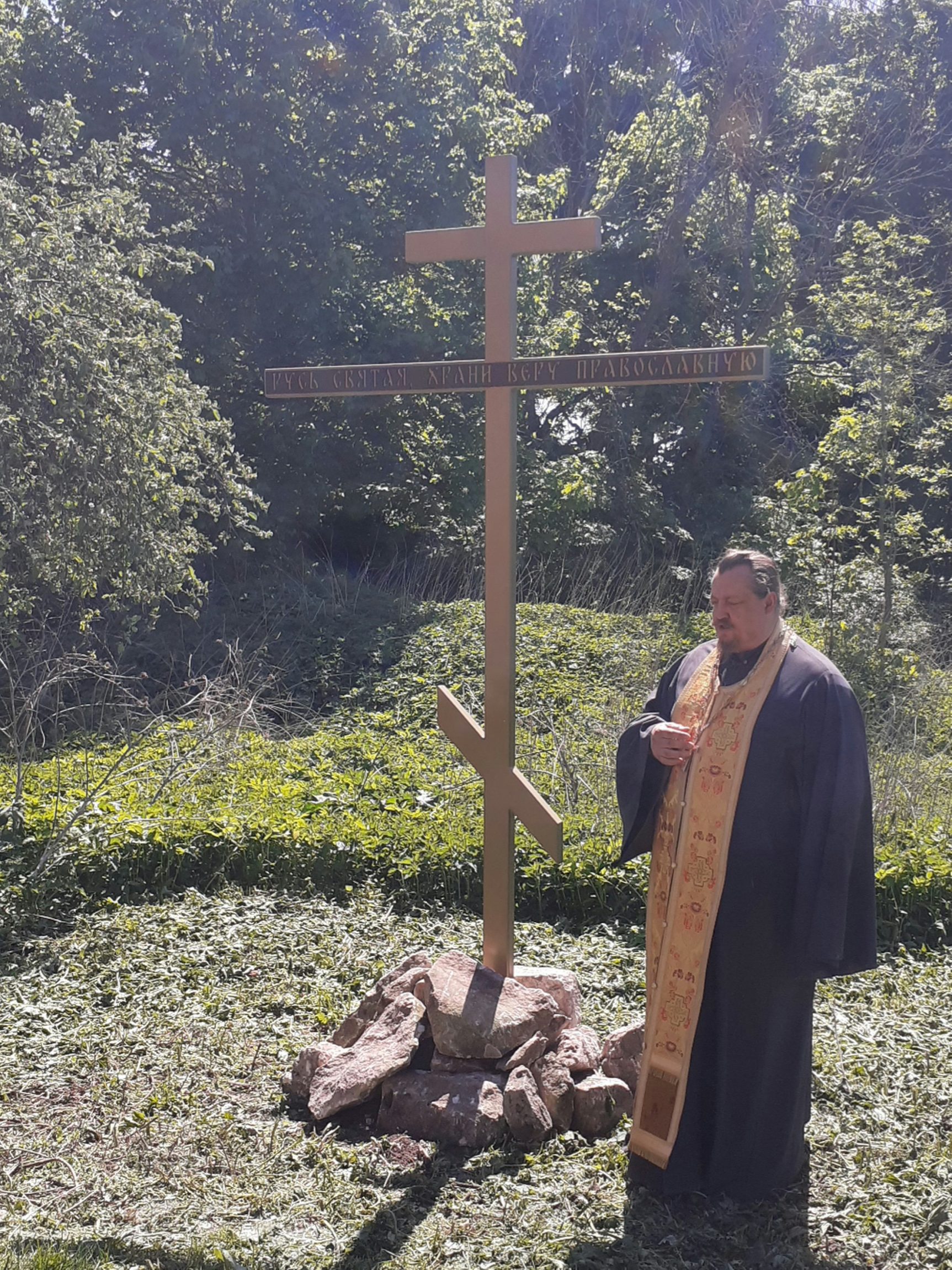 Торжество продолжилось освящением поклонного креста, установленного у храма накануне праздника  прихожанами Константином и Андреем. “Русь святая, храни веру православную” – гласит надпись на кресте.