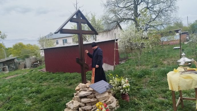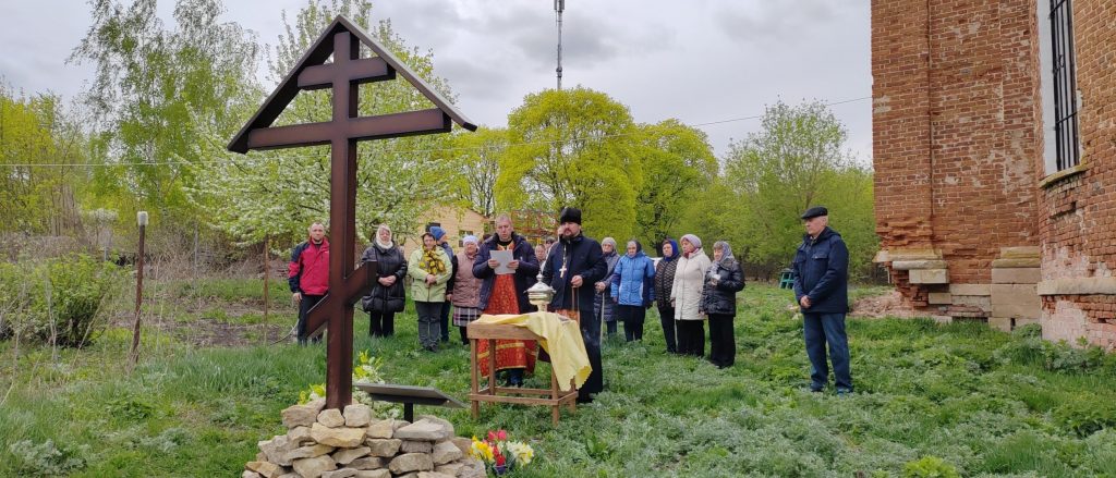 Владимир Тишкин, благоустроитель храма, полковник подводник в отставке, рассказал об установке креста: «Жители еще помнят разрытые и разграбленные склепы, брошенные могильные плиты. К началу возрождения храма там и следа от всего этого не осталось, и самая большая свалка мусора была именно там. Очень грустно. Давно думал о том, что на этом месте хорошо бы установить поклонный крест, отдать дань памяти упокоенным в этой земле. Мусор мы еще в 2022 году весь вывезли.