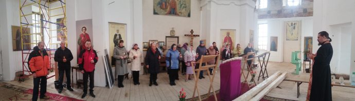 От батюшки Алексия в этом году было получено на установку креста благословение. Добрые люди сделали в дар храму крест поклонный, красивый, добротный. Привезли и табличку. Много людей поучаствовало в этом нужном деле. Камни возили, сверлили, копали, вымеряли, устанавливали, обкладывали. И вот настал долгожданный день освящения поклонного креста у храма в честь великомученицы Екатерины. Спасибо отцу Алексию с его супругой, спасибо местным жителям, всем, кто пришел. Я счастлив! Слава Богу за всё».