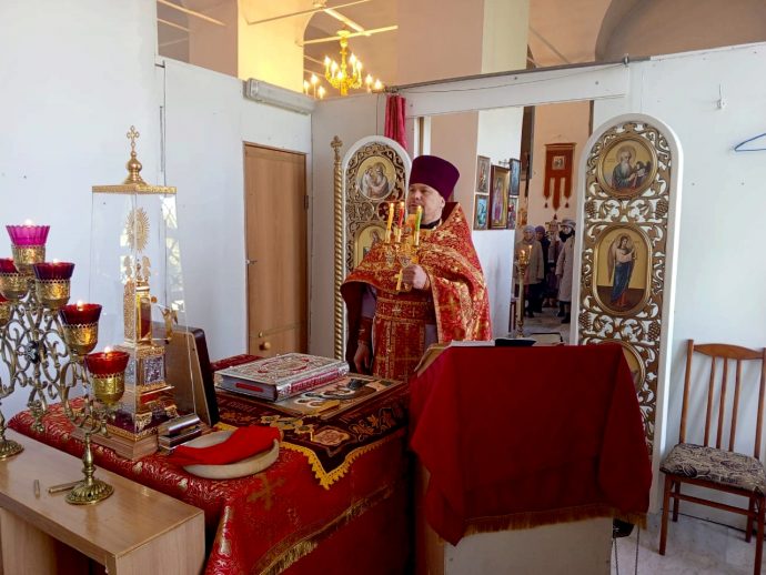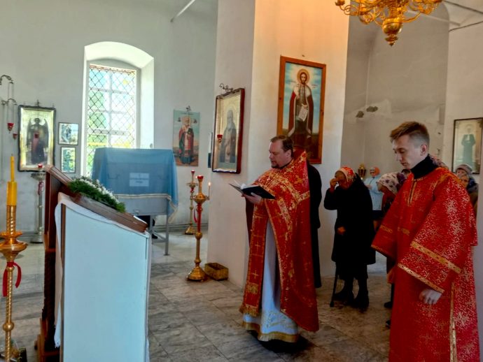 Перед Божественной литургией, которую совершил настоятель храма иерей Сергий Малютин, был совершен водосвятный молебен.