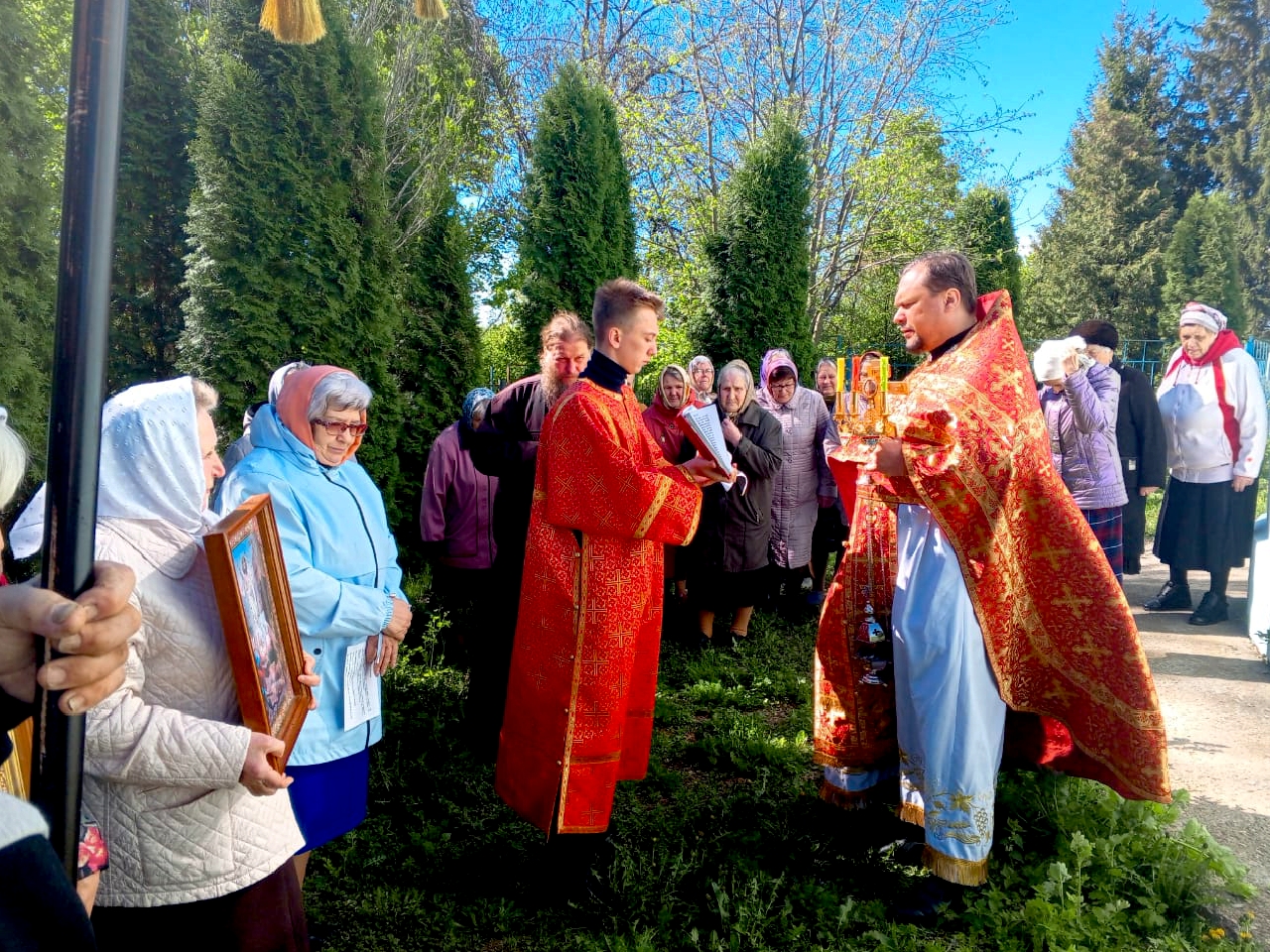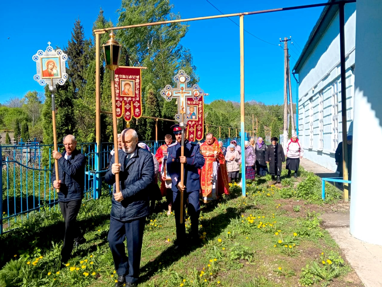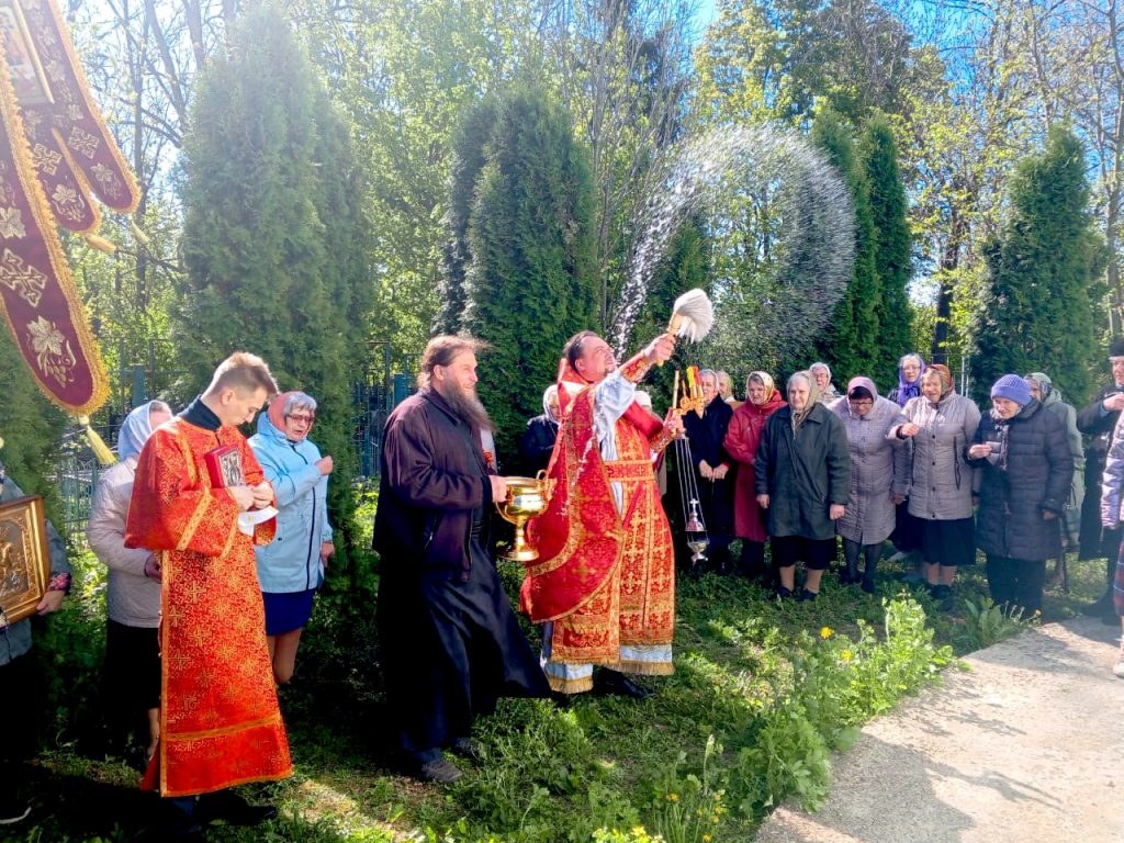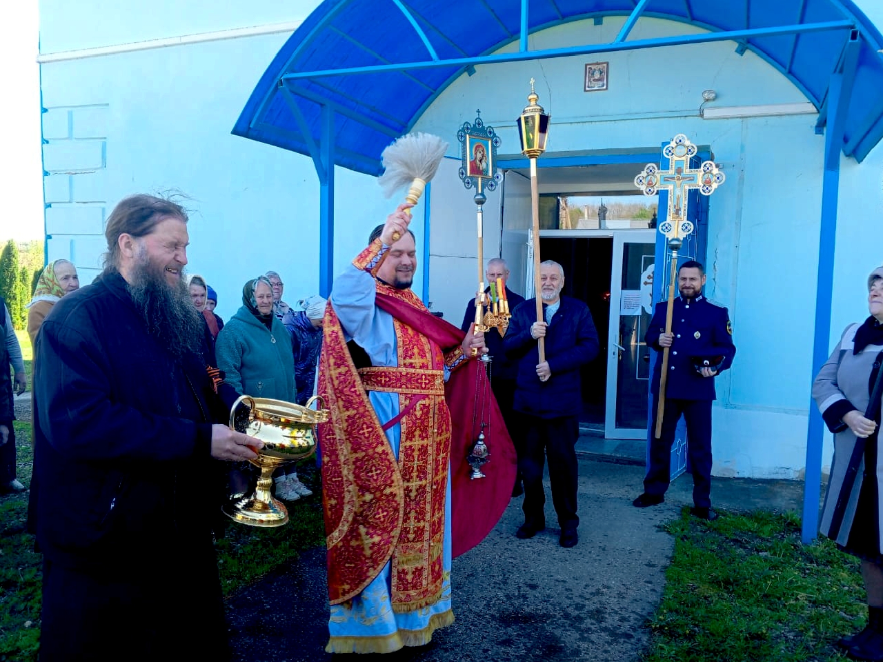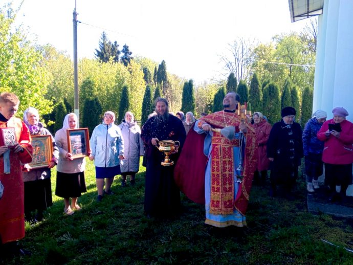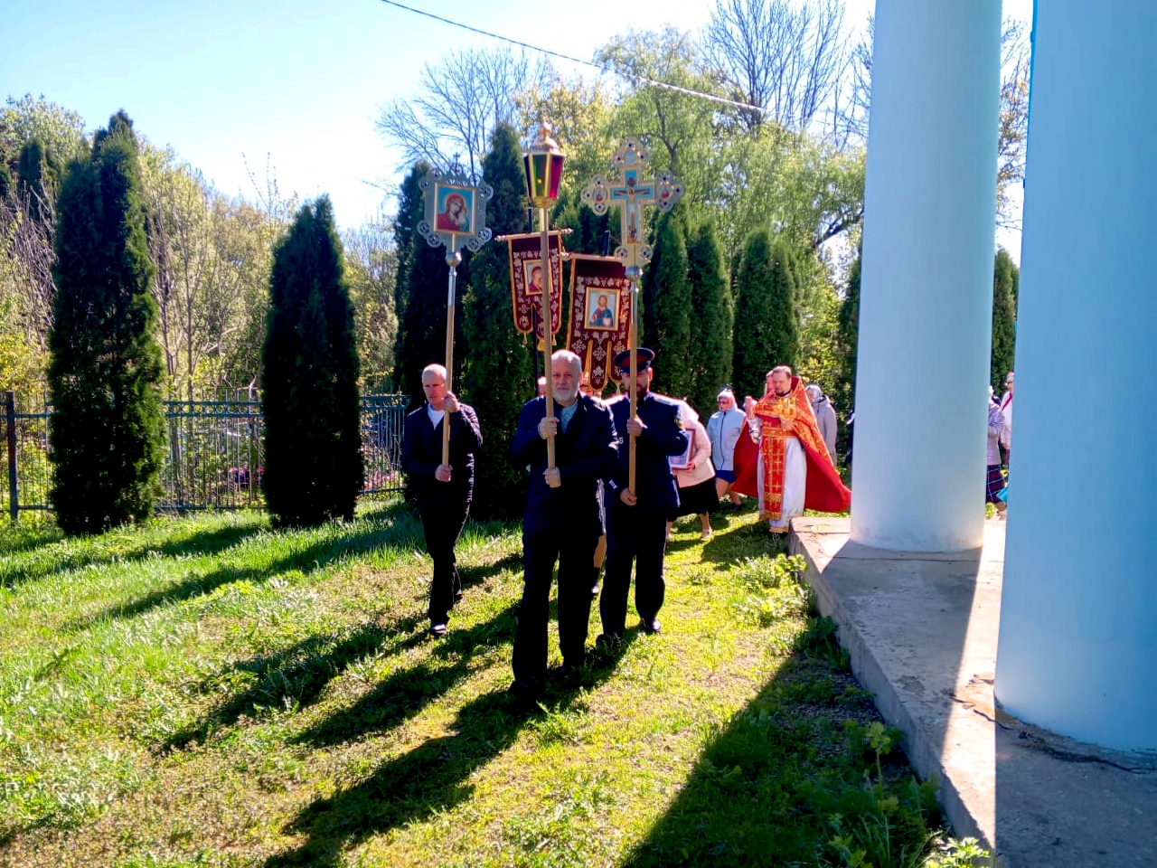 На сугубой ектении были вознесены особые прошения и произнесена молитва о сохранении святой Руси. После заамвонной молитвы был совершен крестный ход, во время которого под пение «Христос Воскресе» иерей Сергий щедро окропил верующих святой водой. После окончания крестного хода была прочитана молитва святому великомученику Георгию и пропето величание.