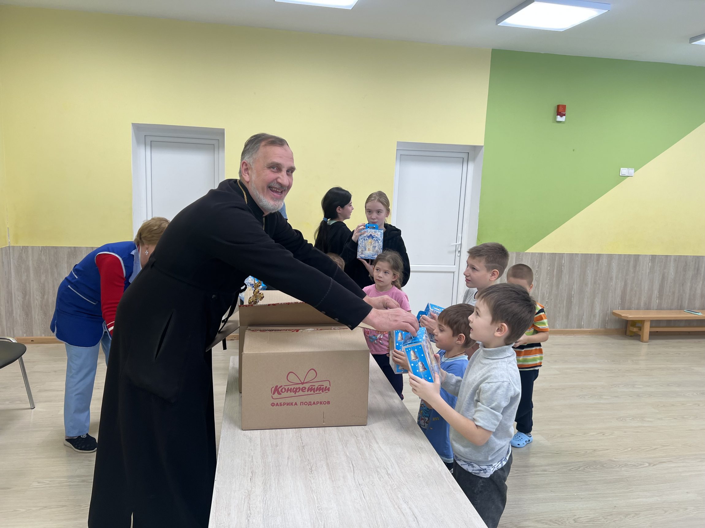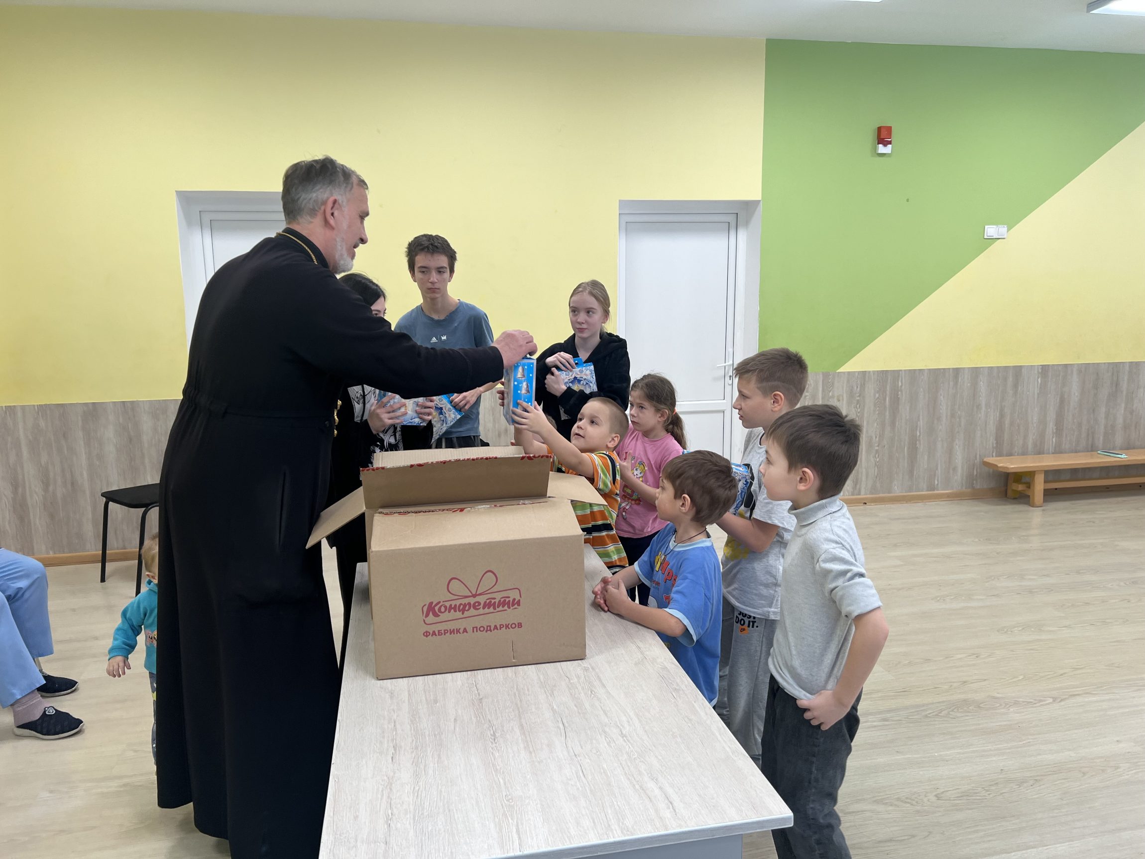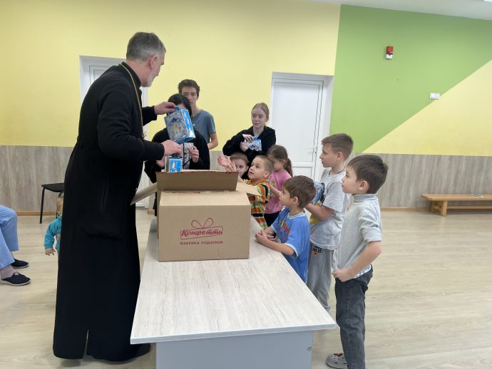 Затем священник вручил детям сладкие подарки и пожелал скорейшего выздоровления и возвращения домой.