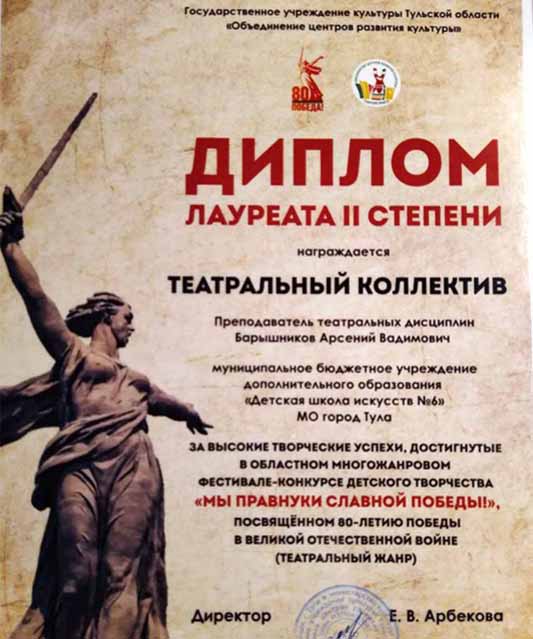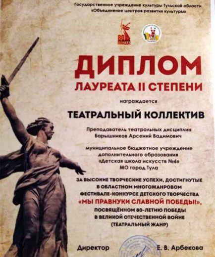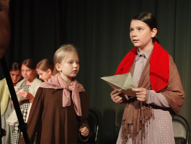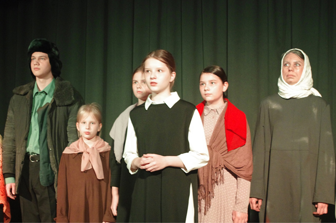 — Юные артисты — ровесники детей тех воинов, кому пришлось взять в руки оружие и встать на защиту Родины, — рассказал режиссер-постановщик Арсений Вадимович Барышников. — Цель творческого проекта — достучаться до сердец молодых зрителей, чтобы они почувствовали, как было трудно матерям и детям жить и работать в тылу, ждать родных из пекла войны. Театральный коллектив считает своим долгом рассказывать силой сценического искусства правду о том тяжелом и героическом времени, когда весь народ смог выстоять и одержать Победу.