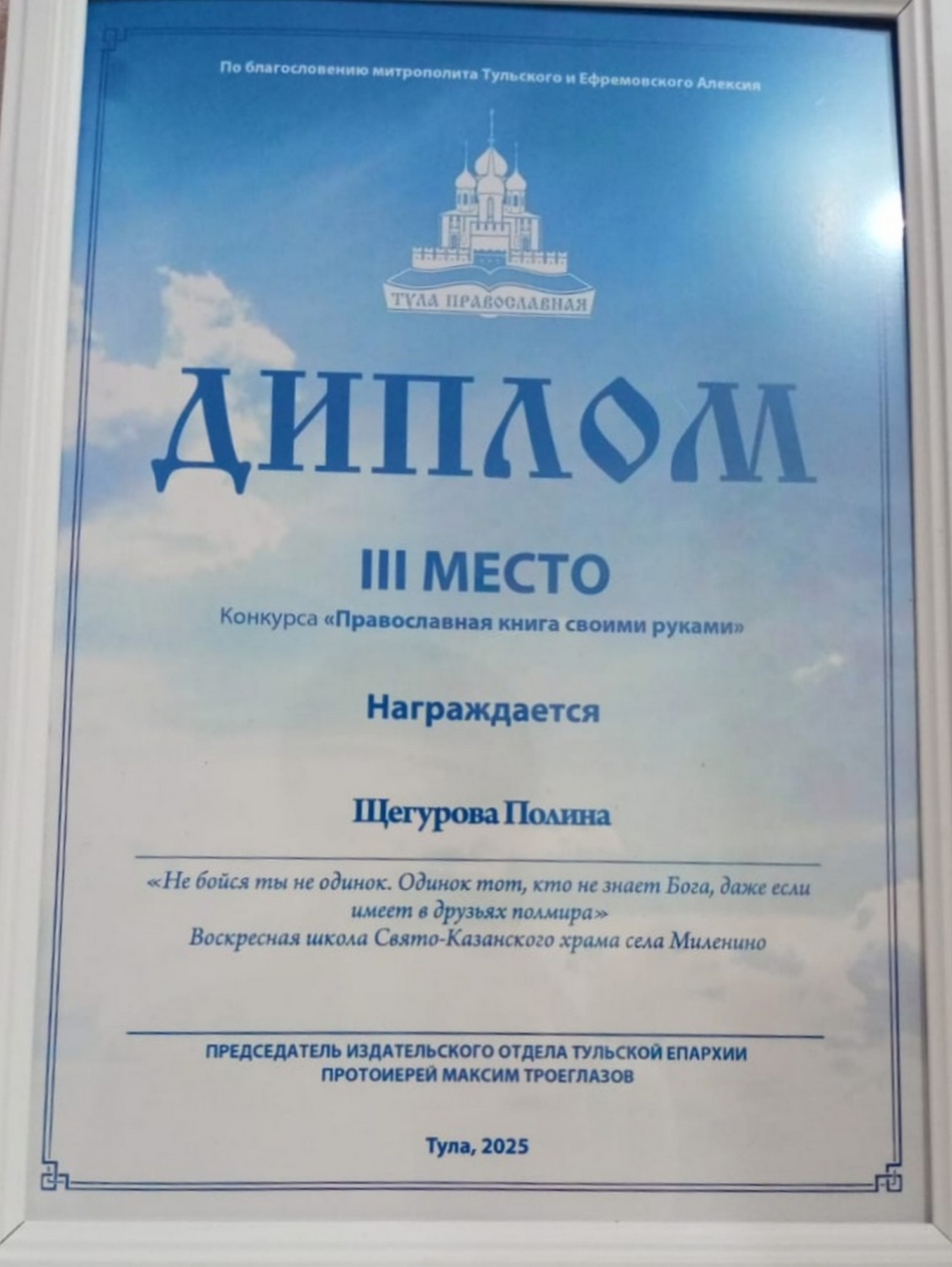 По благословению настоятеля Казанского храма села Миленино иерея Димитрия Броновицкого воспитанники воскресной школы приняли участие в епархиальном конкурсе «Православная книга своими руками».