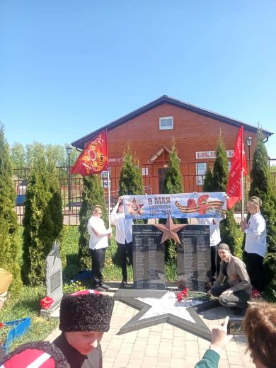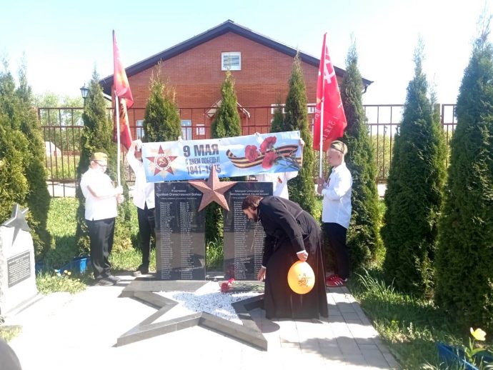 После концерта присутствующие отправились к мемориалу для возложения цветов. Иерей Георгий Протопопов провозгласил «Вечную память» всем павшим героям войны и труженикам тыла, всем, кто отдал свои силы и саму жизнь за великую Победу великой страны во имя мира на Земле.