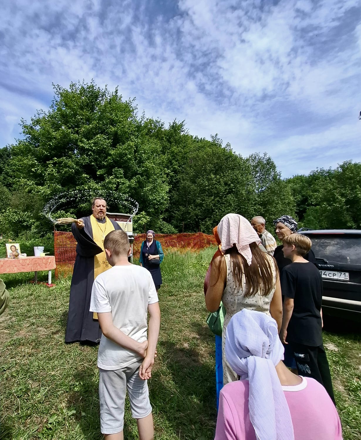 После совместной молитвы отец Александр поздравил жителей села и соседних населенных пунктов с праздником, после чего раздал верующим святую воду.