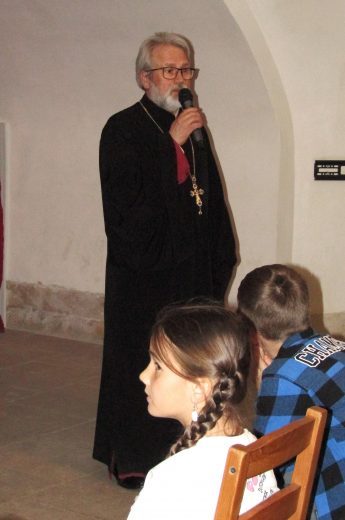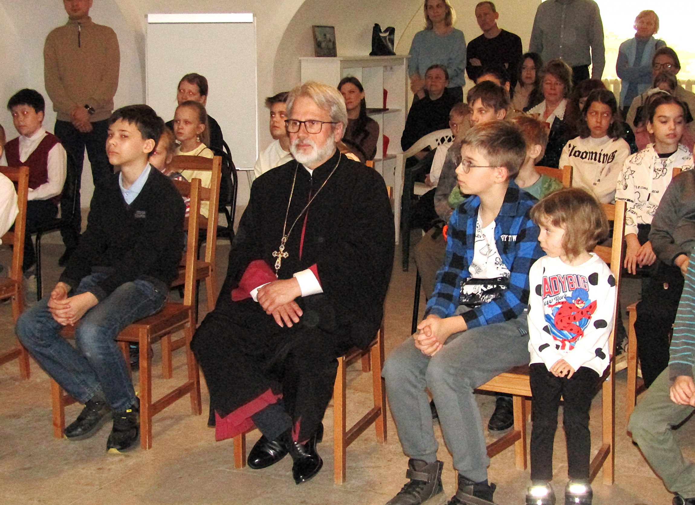 В завершение праздника детей напутствовал руководитель воскресной школы диакон Владимир Мартынов, а добровольцев благодарил за их добрый душеспасительный спектакль.